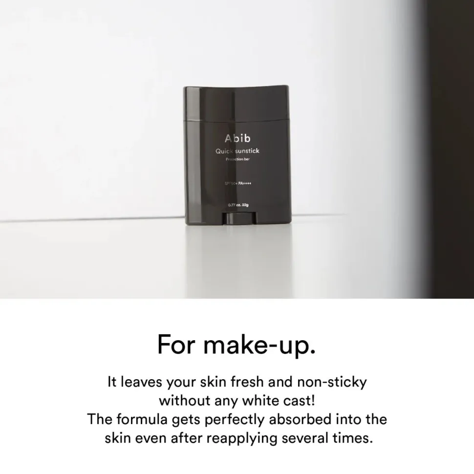Der Abib Quick Sunstick Protection Bar SPF50 PA ist ein praktischer Sonnenschutzstift für eine einfache Wiederanwendung des Lichtschutzfaktors während des Tages. Angereichert mit Centella Asiatica, Aloe-Extrakt, Ceramiden und Akazienpeptiden bietet er Sonnenschutz, während er die Haut beruhigt und hydratisiert. Sein Pudermantel reguliert überschüssiges Sebum effektiv und hinterlässt ein sanftes mattes Gefühl. Die leichte Formel wird schnell absorbiert und ist ideal für die Anwendung unterwegs. Kompakt und nicht fettend, ist er perfekt für die Anwendung über Make-up ohne zu verschmieren.