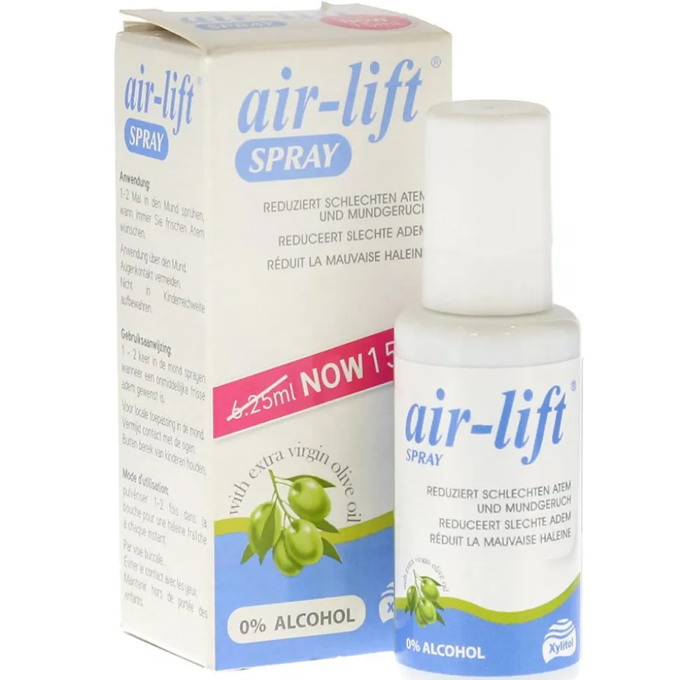 Das Air-Lift Spray ist das perfekte Spray zur beseitigung von Mundgeruch und schlechtem Atem. Es wirkt sofort und hält stundenlang. Zudem bekämpft das enthaltende Xylitol Karies und Plaque.