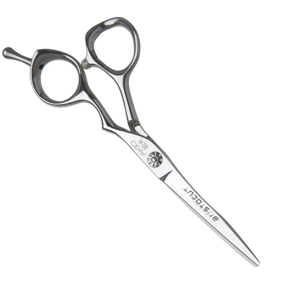 Die Aristocut Haarschneideschere AKIO 5.5 os hat außerordentlich schmale und scharfe Klingen aus Kobaltstahl für einen besonders präzisen Schnitt.
