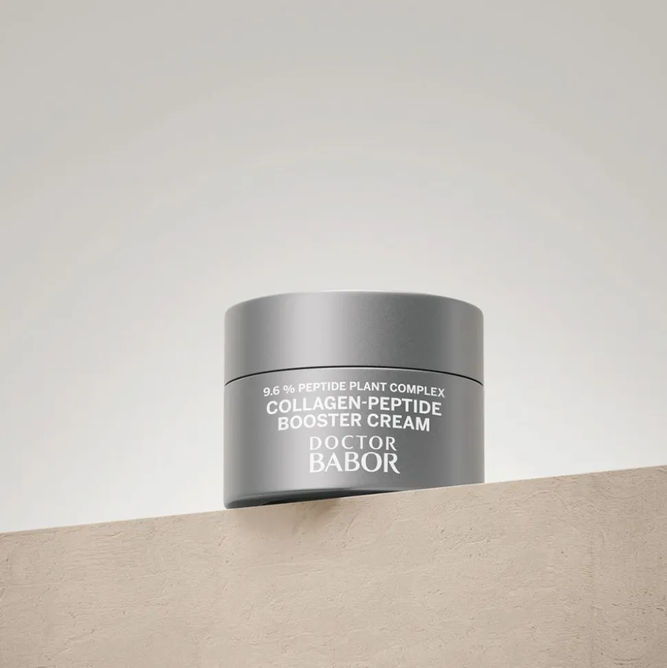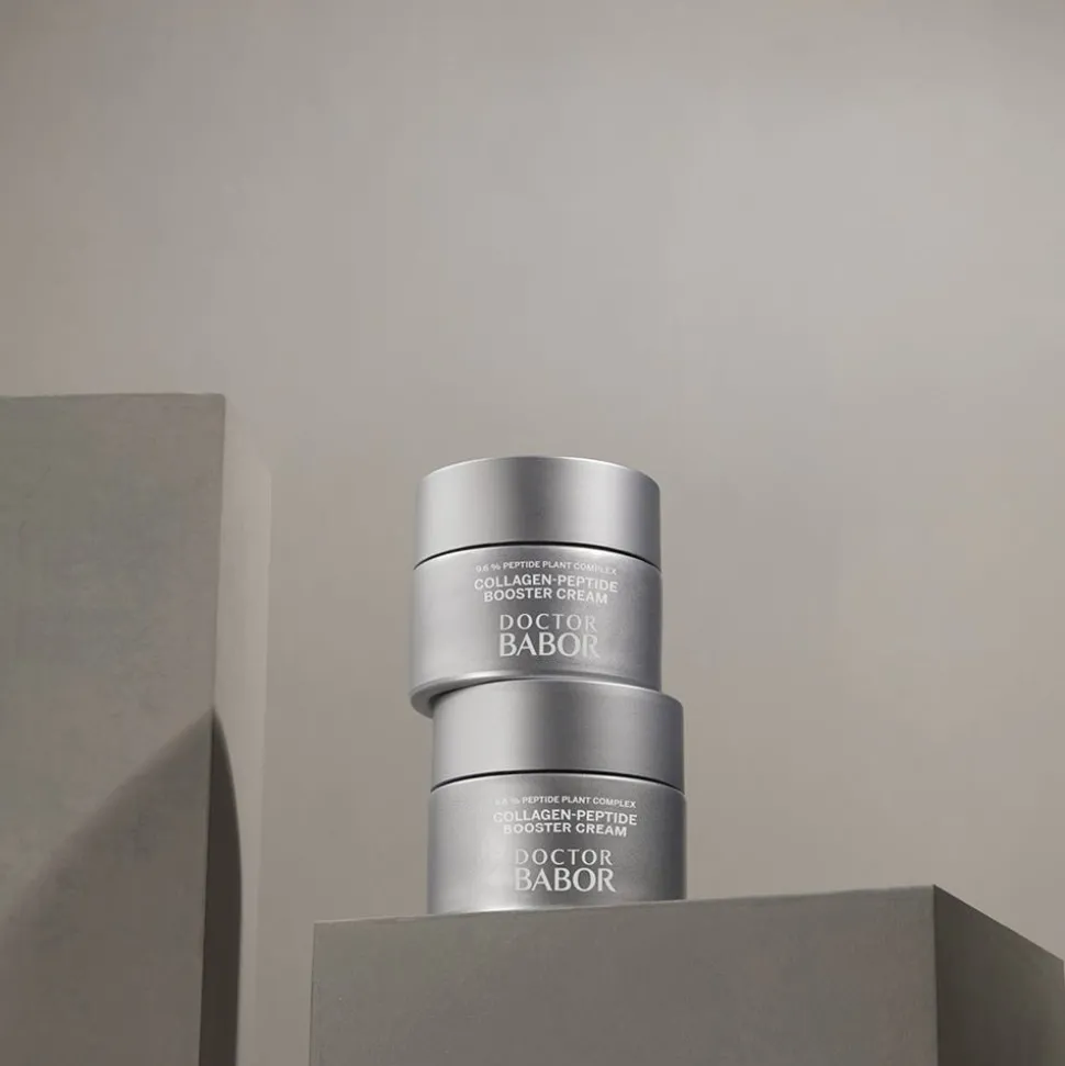 Die BABOR Collagen Peptide Booster Cream hat eine zarte Formel für eine nachweisliche Reduktion von Faltentiefe und Unterstützung der hauteigenen Kollagenproduktion durch die Kombination hochwirksamer Peptide. Tetrapeptide und ein pflanzliches Typ-I-Kollagen-Fragment verbessern die Hautelastizität zur Milderung von Konturverlust und nachlassender Gewebefestigkeit. Multi-molekulare Hyaluronsäuren spenden intensive Feuchtigkeit. 4% Squalane und wertvolle Öle bewahren die Feuchtigkeit und sorgen für glattere Haut. Ergebnis: Glatteres Hautbild und gemilderte Linien und Fältchen.
