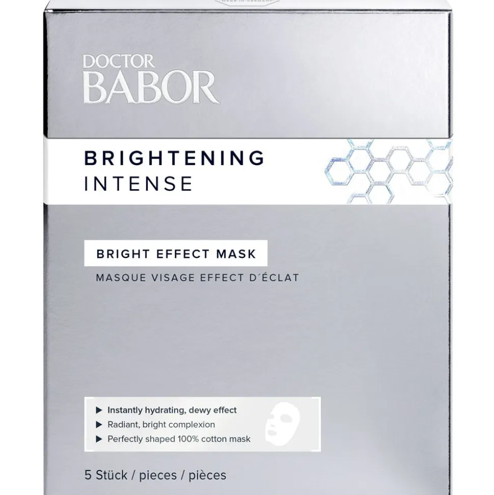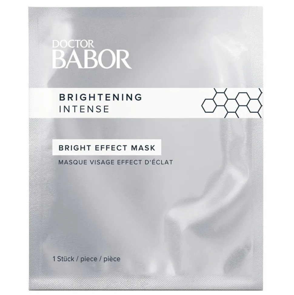 Die BABOR Doctor Babor Bright Effect Mask ist eine perfekt geformte Tuchmaske aus 100% Baumwolle mit Power-Brightening Wirkstoffen. Sie verleiht der Haut bereits nach 15 Minuten einen hell strahlenden Teint. Der EXP Bright-Komplex verleiht der Haut ein natürliches Strahlen. Die Baumwollmaske schmiegt sich perfekt der Haut an und sorgt für eine optimale Wirkstoffaufnahme. Der Feuchtigkeitslevel der Haut wird verbessert.