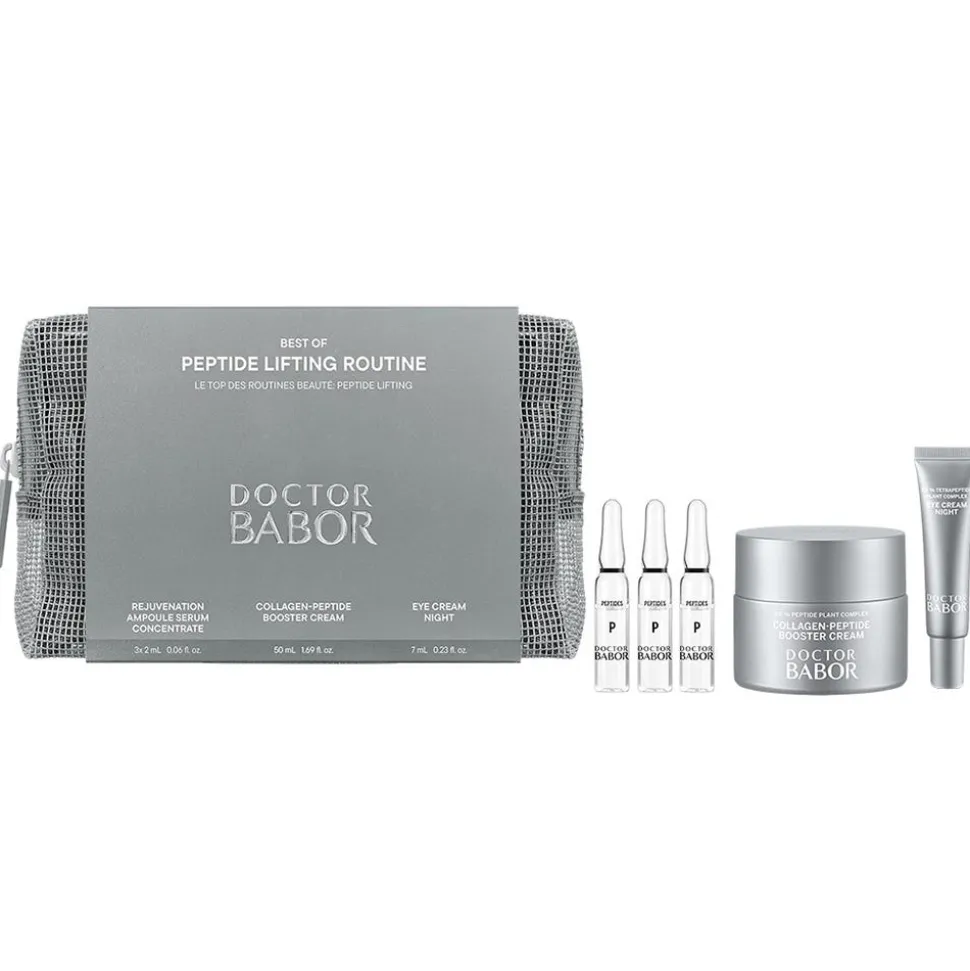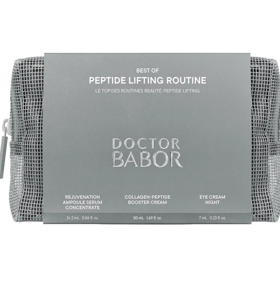 Die BABOR Peptide Lifting Routine ist ein Gesichtspflege-Set für reifere Haut mit ersten Zeichen der Hautalterung. Das Set bietet eine 3-Schritt-Lifting-Routine für eine strahlend schöne, straffere Haut mit jugendlichem Glanz. Die Produkte werden in einer praktischen Kosmetiktasche gelierfet.