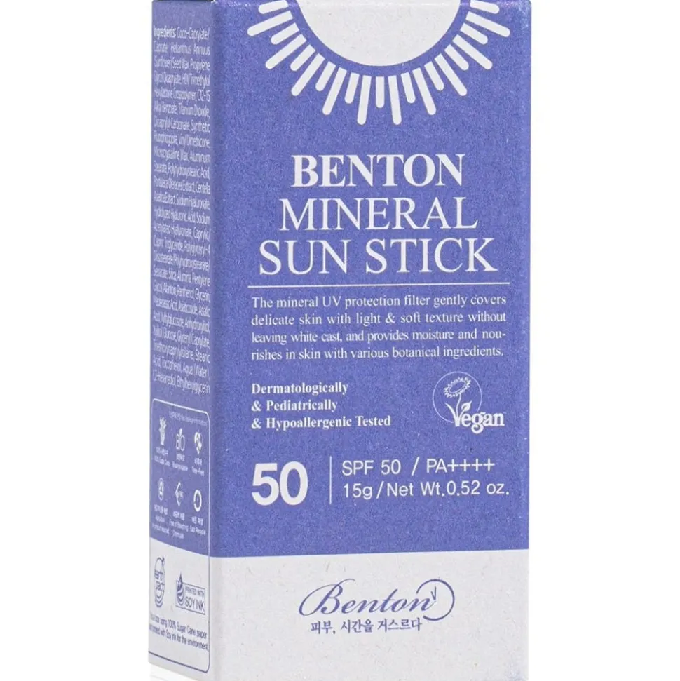 Erweitere deine tägliche Hautpflege mit dem Benton Mineral Sun Stick SPF 50 PA++++ für das Gesicht, der über einen Mineralfilter mit Lichtschutzfaktor 50 und PA++++-Schutz verfügt. Dieser praktische Stick ist deine erste Wahl für eine schnelle und unkomplizierte Anwendung zu jeder Zeit. Mache dir beim Auftragen von Sonnenschutzmitteln keine Sorgen mehr über die Handhygiene! Er ist eine sanfte Alternative zu chemischen Schutzmitteln, die Reizungen hervorrufen können. Geeignet für alle Hauttypen, auch für empfindliche Haut. Formuliert mit Titandioxid als physikalischem Mineralfilter, drei Arten von Hyaluronsäure mit unterschiedlichen Molekulargewichten für intensive Feuchtigkeitsversorgung und Vitamin E (Tocopherol) für Hautschutz, deren Gleichgewicht und Nährung.Seine leichte Textur sorgt für ein nicht klebriges, angenehmes Hautgefühl nach dem Auftragen. Der Benton Mineral Sun Stick SPF 50 PA++++ eignet sich für den ganzjährigen Gebrauch und verleiht deiner Haut ein strahlendes, nicht fettendes Finish.