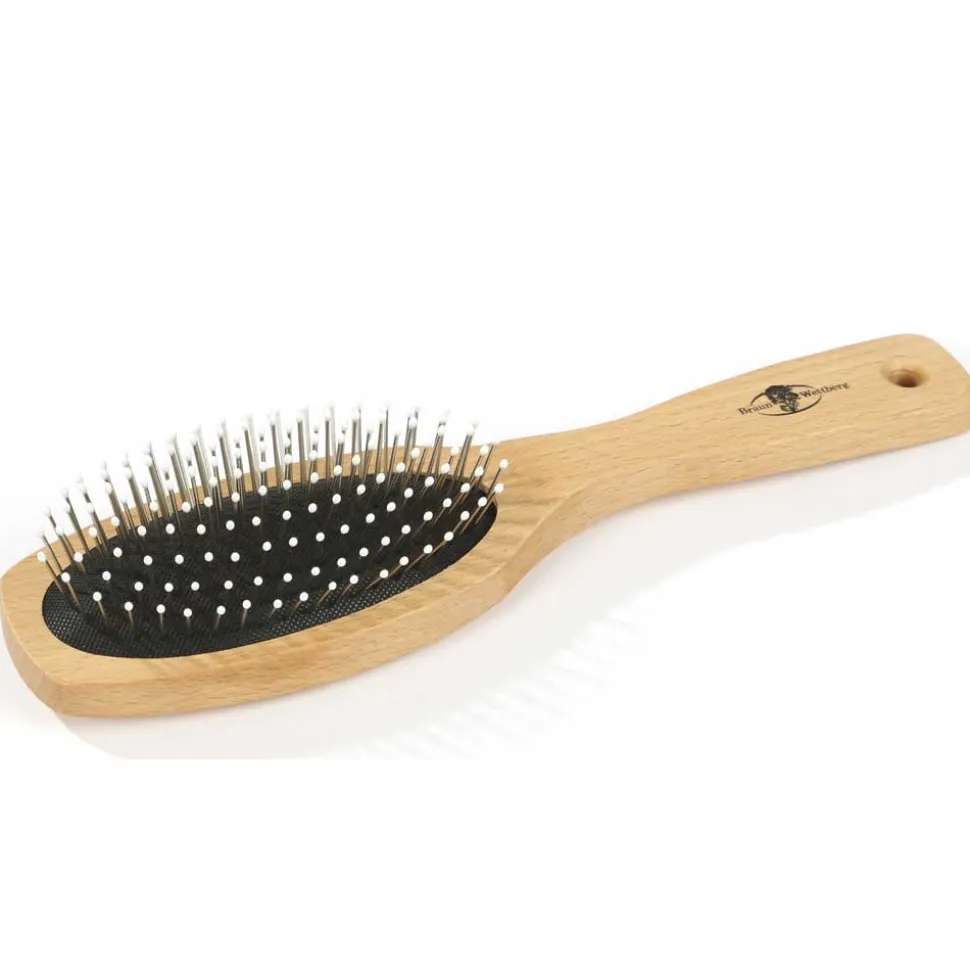 Die Braun & Wettberg Holzbürste – Drahtstifte ist aus FSC-zertifiziertem Buchenholz gefertigt und verfügt über einen hochwertigen Griff und Drahtstifte mit Noppen.