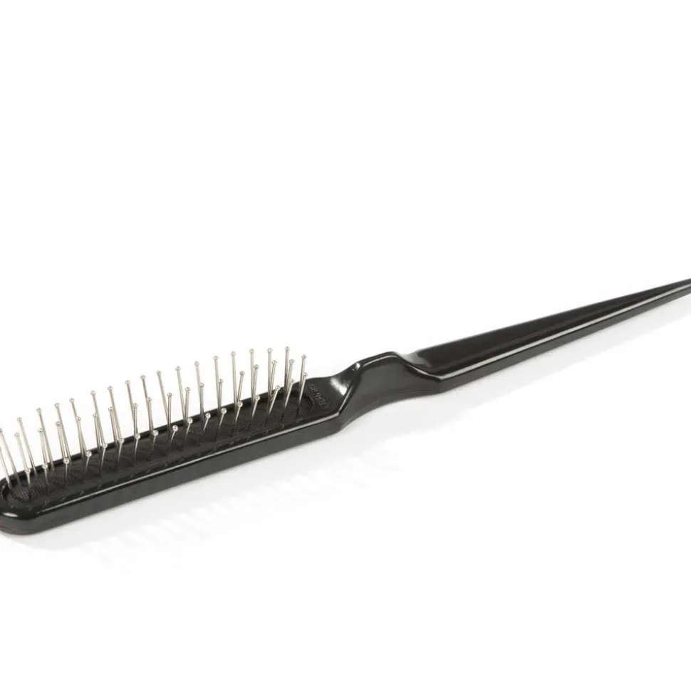 Die Braun & Wettberg Kunststoffbürste mit Toupiergriff, schwarz ist mit Drahtstiften mit Kugelköpfen ausgestattet. Der praktische Toupiergriff erleichtert das Frisieren.