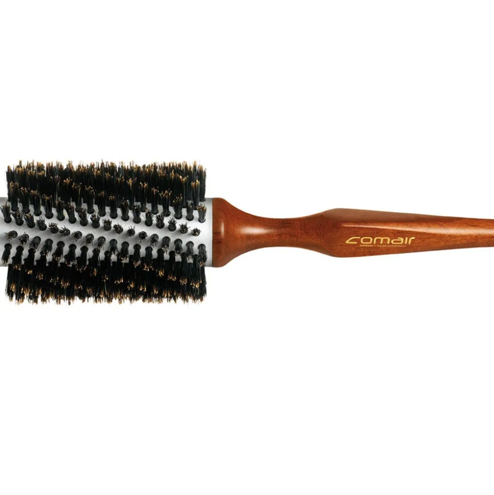 Runde Stylingbürste mit Wildschweinborsten und wärmespeicherndem Metall-Körper, Durchmesser 65 mm.