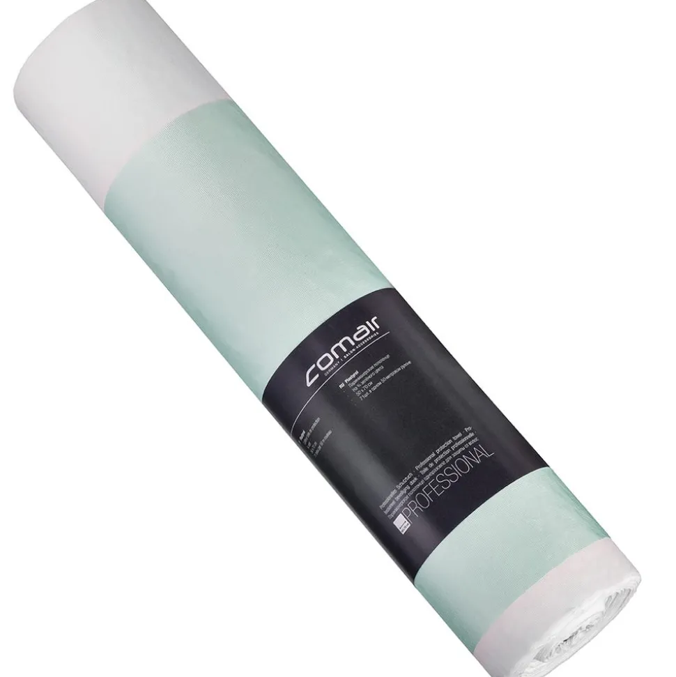 Das 2-lagige Zellstoff Schutztuch ist auf einer Seite durch seine spezielle Beschichtung einseitig wasserundurchlässig: Das Comair Plastyrol Friseur Schutztuch in der 50 Meterrolle in grün beinhaltet 71 Tücher à 50 x 70 cm.