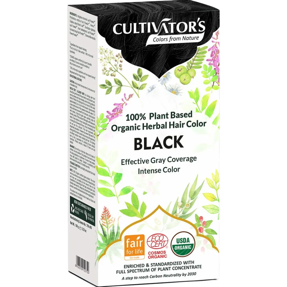 Die Cultivators Herbal Hair Color Black bietet eine Haarfärbelösung, die nicht nur eine lebendige Farbe verleiht, sondern das Haar auch pflegt. Die sanfte Formel aus Bio-Kräutern verleiht dem Haar brillianten Glanz, Geschmeidigkeit und Kraft. Graue und weiße Haare werden perfekt abgedeckt. Angereichert mit Henna und Aloe sorgt diese Haarfarbe für Volumen und Pflege in dem Haar.