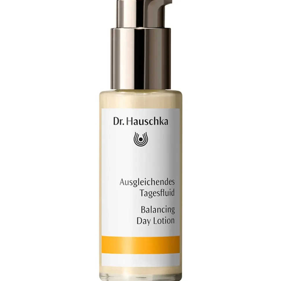 Das Dr. Hauschka Ausgleichende Tagesfluid bringt Mischhaut, die zu glänzender T-Zone und leicht trockenem Wangenbereich neigt, ins Gleichgewicht. Die zart fließende Textur reguliert unreine Haut und schenkt ihr langanhaltend Feuchtigkeit. Die Komposition mit hochwertigen pflanzlichen Auszügen und Ölen reguliert nachfettende Hautpartien, beruhigt Unreinheiten und reduziert Spannungsgefühle. Wertvolle Auszüge aus Wundklee, Schachtelhalm und Kapuzinerkresse geben der Haut eine klarere Struktur und schenken ein reineres Hautbild.