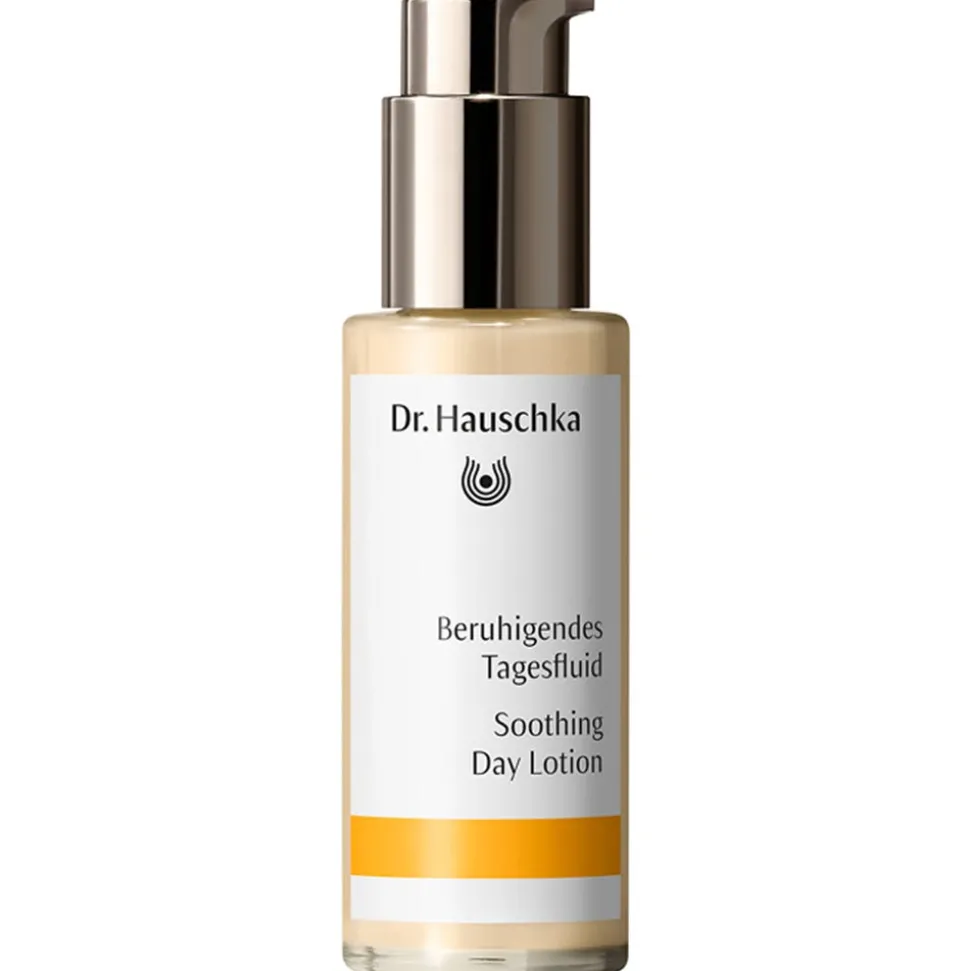 Das Dr. Hauschka Beruhigende Tagesfluid besänftigt empfindliche, gerötete Haut. Auch Haut, die zu erweiterten Äderchen (Couperose) neigt, wirkt weniger irritiert. Die zart fließende Textur schenkt der Haut langanhaltenden Schutz über den ganzen Tag. Die Komposition mit hochwertigen pflanzlichen Auszügen und Ölen regt die natürliche Fett- und Feuchtigkeitsbildung an und reduziert Spannungsgefühle. Wertvolle Auszüge aus Rose, Borretsch und Frauenmantel stärken die Haut und sorgen für ein ebenmäßiges Hautbild.