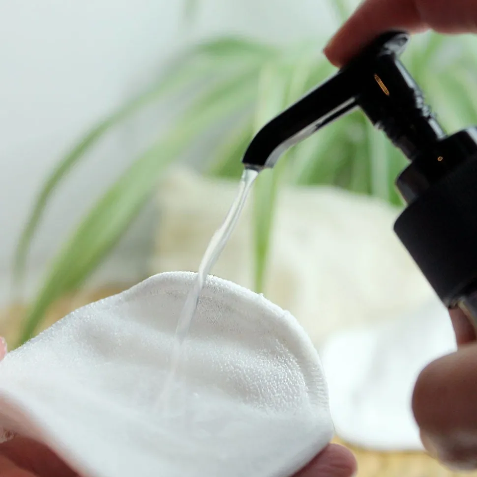 Geben Sie drei Pumpstöße dieses Mizellenreinigers auf ein wiederverwendbares Watte- oder Bambuspad und wischen Sie sanft über Gesicht und Hals, um Make-up und Unreinheiten von der Haut zu entfernen.