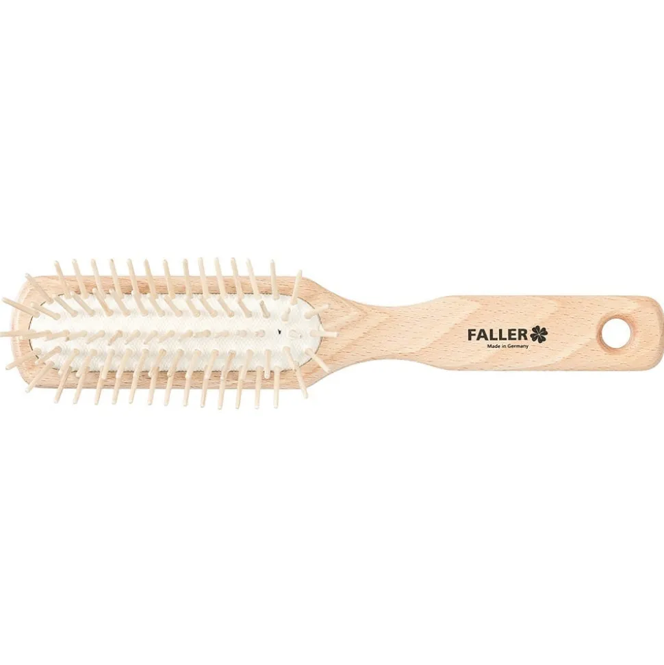 Die Faller Haarbürste schmaler Griff Holzstifte ist eine Pneumassagebürste mit Griff und Stiften aus Buchenholz.