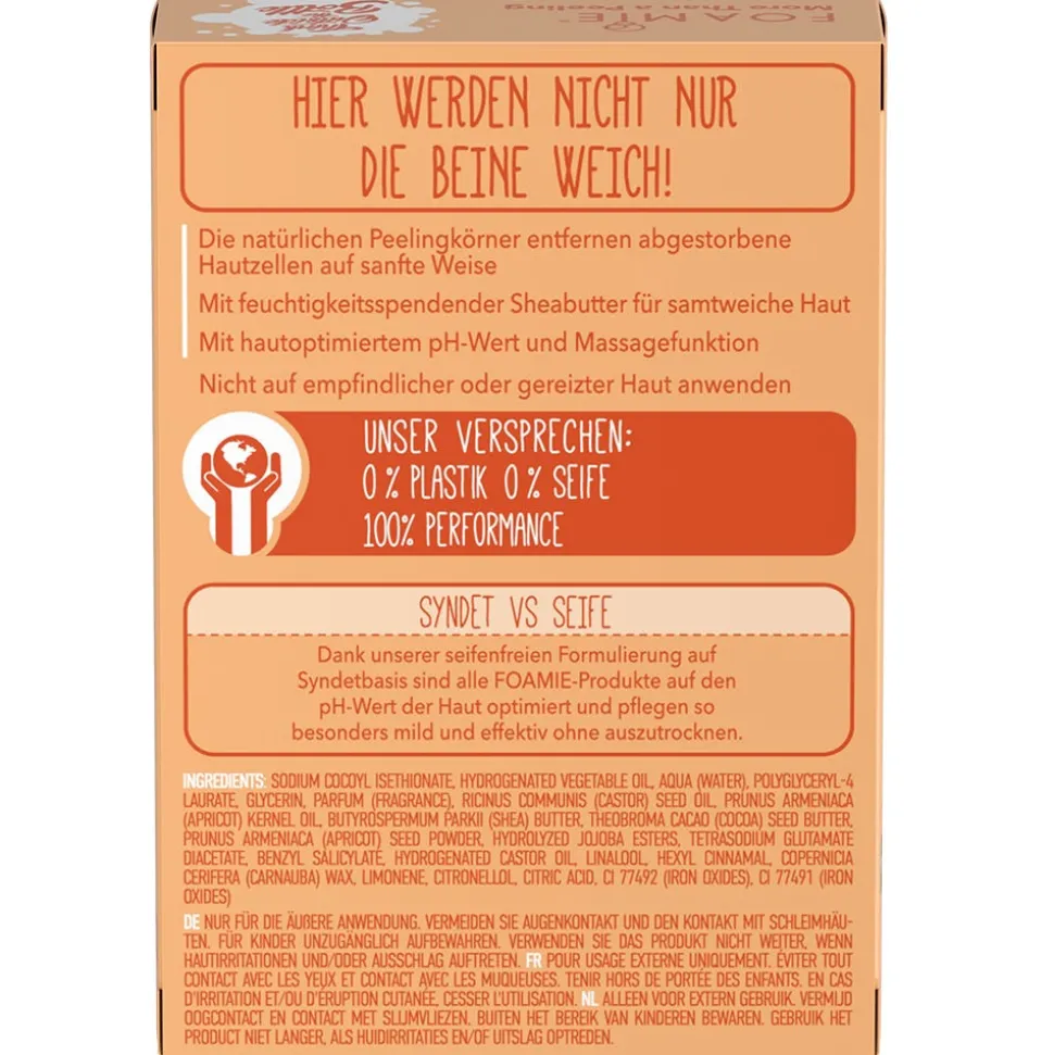 Die FOAMIE Feste Duschpflege – More than a Peeling mit Shea Butter & Aprikosenkernen ist Duschpflege und Peeling in einem. Mit natürlichen Peelingkörnern werden sanft abgestorbene Hautzellen entfernt.