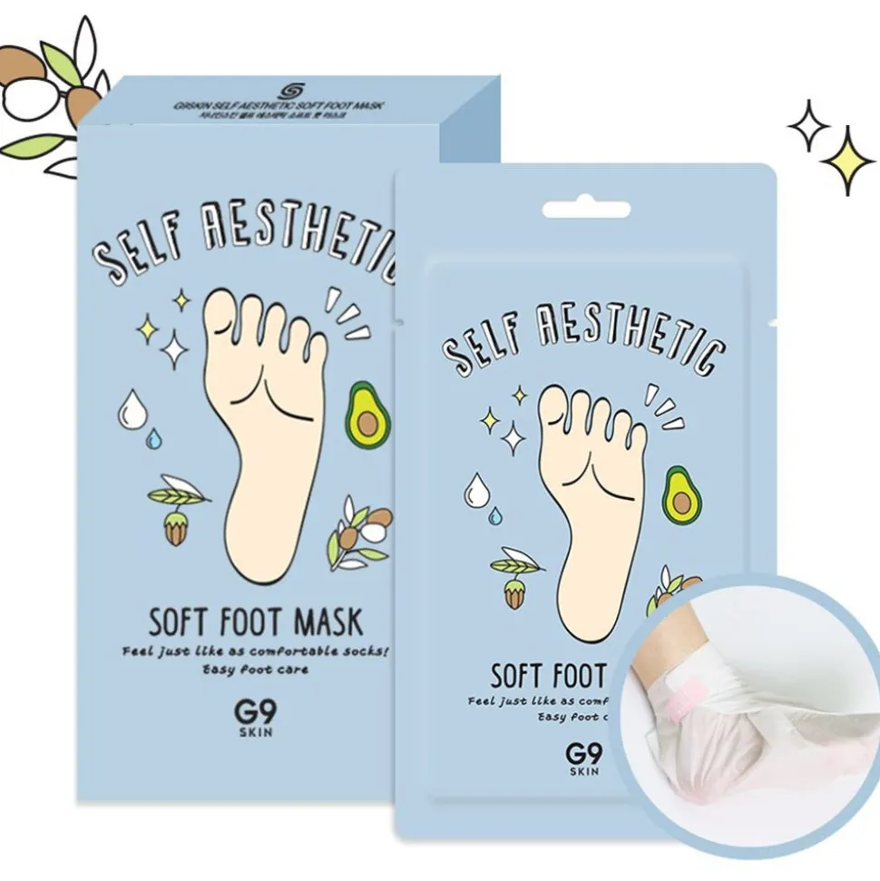 Die G9 Self aesthetic soft foot mask mit Urea spendet Feuchtigkeit und entfernt abgestorbene Hautschuppen.