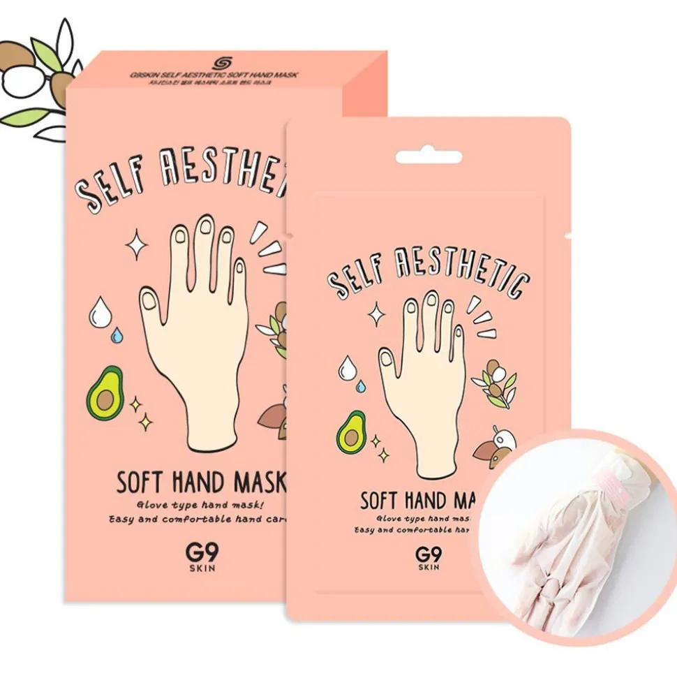 Die G9 Self aesthetic soft hand mask ist eine feuchtigkeitsspendende Handschuh-Maske mit Urea, Sheabutter und Pflanzenölen.