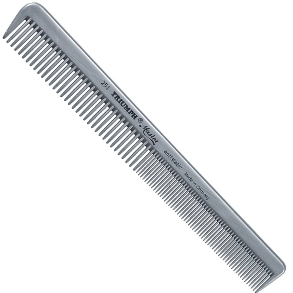 Kunststoffkämme werden in einem Arbeitsgang in ihre endgültige Form gegossen. Die Qualität und die Eigenschaften eines Kammes werden durch die Güte des Formwerkzeuges und den verwendeten Kunststoff bestimmt. Alle Kunststoffkämme von Hercules Sägemann Triumph Master werden in hochwertigen Formwerkzeugen gefertigt und sind dadurch frei von groben, haarschädigenden Graten. Die verwendeten Kunststoffe Polycarbonat und Polyoximethylen (abgekürzt POM) bedienen die Anforderungen des preisbewussten Kunden an ein hochwertiges Arbeitsgerät perfekt. Das verwendete Polycarbonat ist außerordentlich schlagzäh. Auf den Punkt gebracht: Kämme aus Polycarbonat sind kaum kleinzukriegen. Der für die Nadelstielkämme verwendete Kunststoff POM zeichnet sich darüber hinaus durch exzellente Federeigenschaften aus. Beide Wirkstoffe zeichnen sich durch eine optimale Dimensionsstabilität sowie eine hervorragende Beständigkeit gegen die meisten Chemikalien aus.