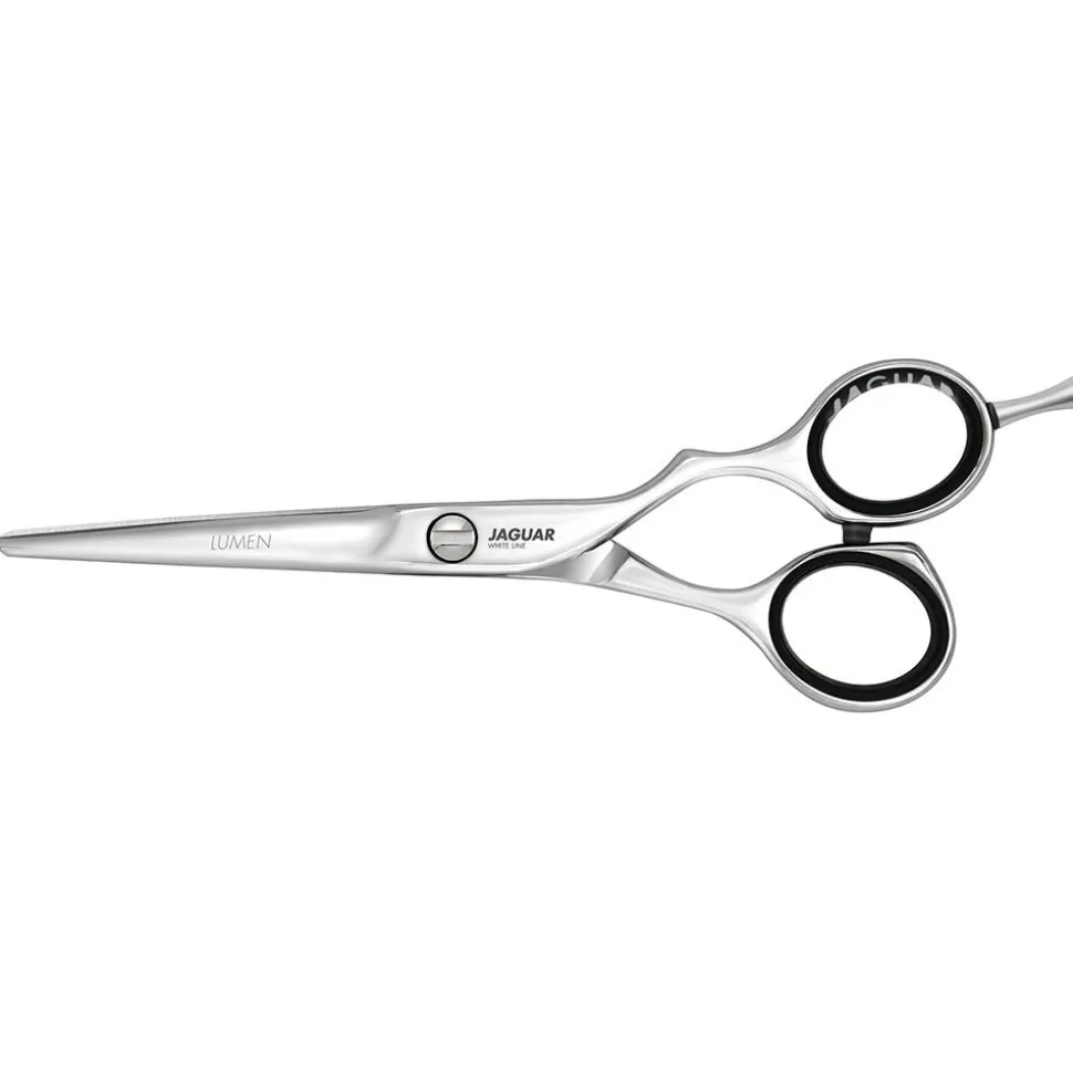 Die Jaguar Haarschneideschere Lumen 6,5 hat ein abgewinkeltes Daumenauge für entspanntes Arbeiten.