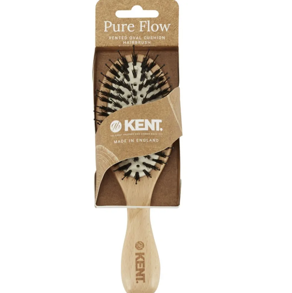 Die Kent Ovale Gummikissen-Haarbürste aus FSC-zertifiziertem Holz ist mit einer Wildschweinborste ausgestattet, die bekannt dafür ist, Haar und Kopfhaut zu in besonderer Weise zu pflegen. Die Löcher auf dem Bürstenrücken ermöglichen eine Luftzirkulation, die sich beim Fönen besonders günstig auswirkt.