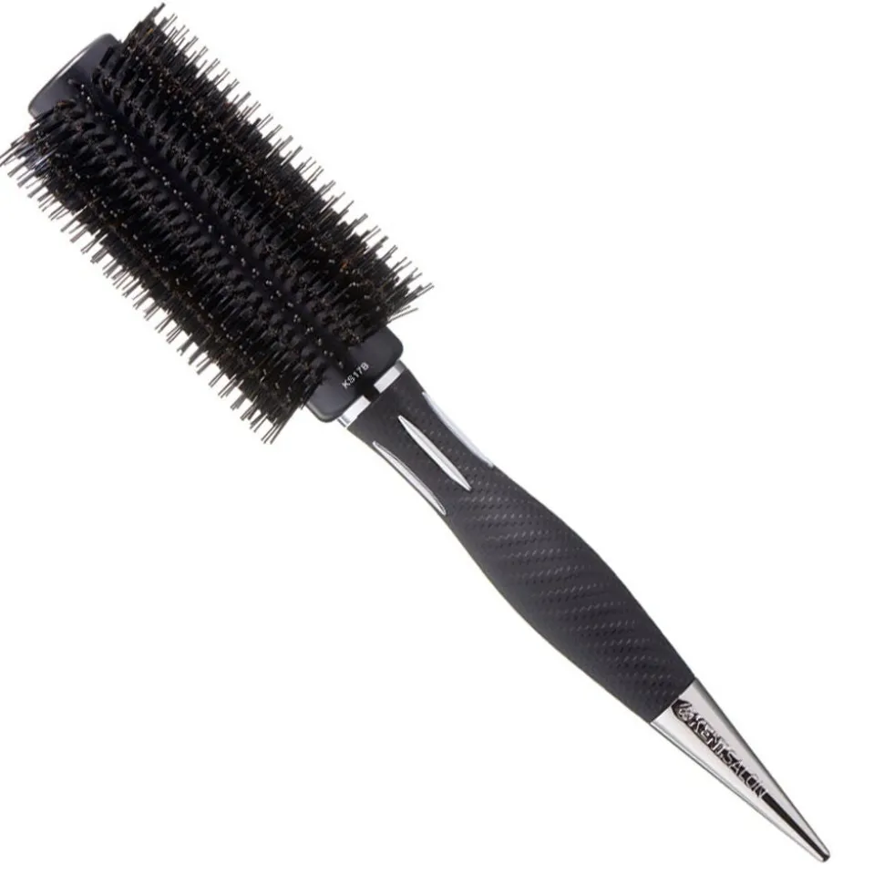 KENT Rundbürste Wildschweinborsten Kopf 30 mm/Borsten 60 mm – Professionelle Rundbürste mit abwechselnden Reihen aus kurzen, festen Wildschwein- und Nylonborsten. Ideal zum Formen von Locken, Glätten und für ein perfektes Finish mit Glanz und Kontrolle. Die Kombination der Borsten sorgt für starken Halt im Haar und gleichmäßige Spannkraft beim Styling.