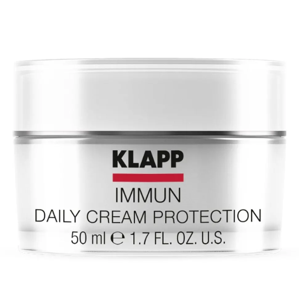 Die Klapp Cosmetics Immun Daily Cream Protection ist eine angenehme leichte Creme, die die Haut optimal mit Feuchtigkeit versorgt. Biotechnologische Wirkstoffe sollen das hauteigene Abwehrsystem stärken, irritierte, gereizte Haut beruhigen und vorzeitiger Hautalterung entgegenwirken. Ideal für trockene und empfindliche Haut.