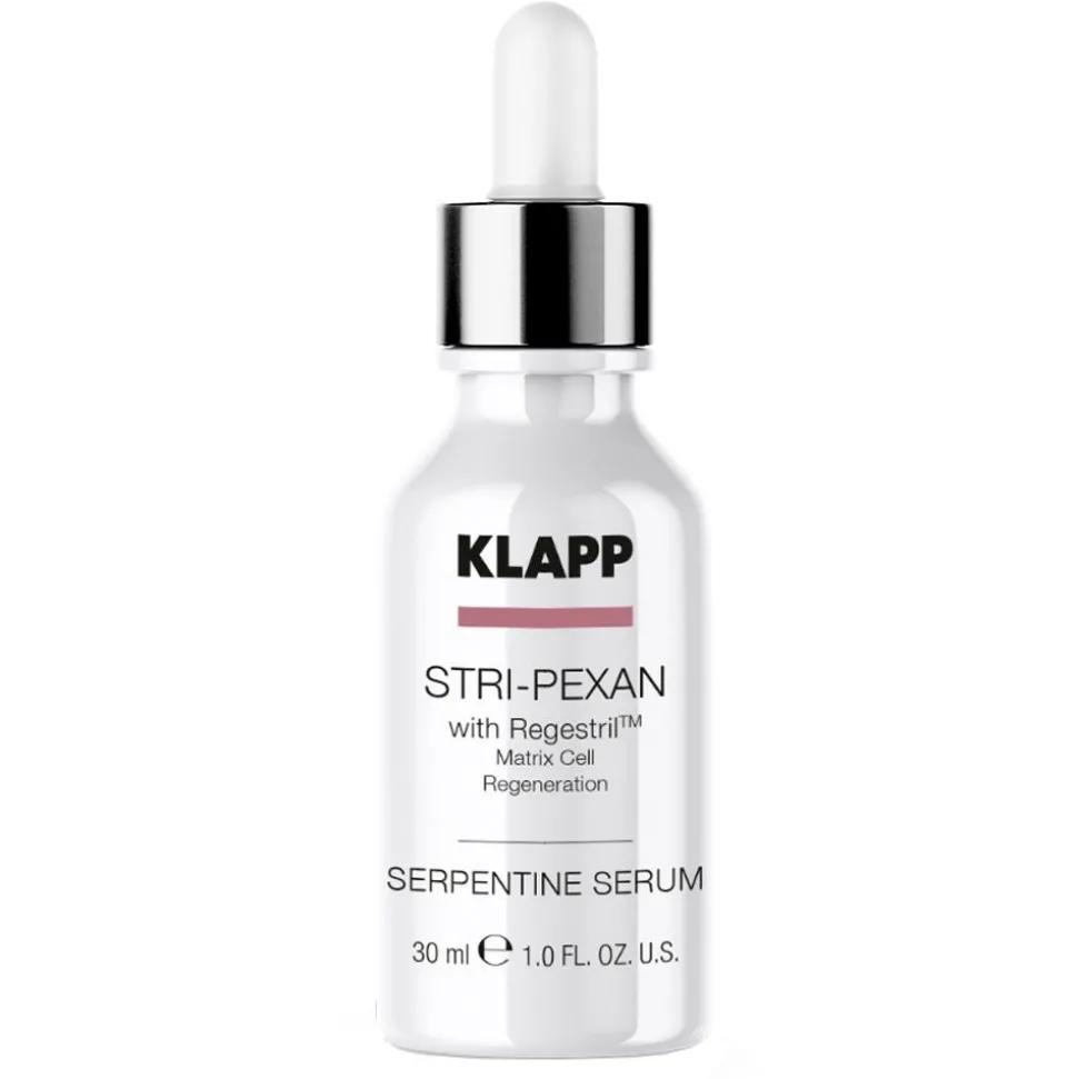 Das Klapp Cosmetics Stri-PexanSerpentine Serum enthält ein synthetisch hergestelltes Peptid in Form eines Wirkstoffs, dessen Effekt dem Gift der Tempelviper nachempfunden ist: Das Eiweiß hemmt die Kontraktion der Gesichtsmuskeln und verfolgt hiermit unmittelbar und nachhaltig das Ziel einer glatten Haut. Mimikfältchen sollen durch gezielte Muskelentspannung reduziert und ein ebenmäßigeres Hautbild erreicht werden. Ergänzt um den bekannten Stri-Pexan Wirkstoff Regestril™ mit straffenden Eigenschaften ergibt sich eine Symbiose aus oberflächlicher Faltenglättung und Entspannung der Gesichtsmuskulatur für ein jugendlicheres Aussehen.