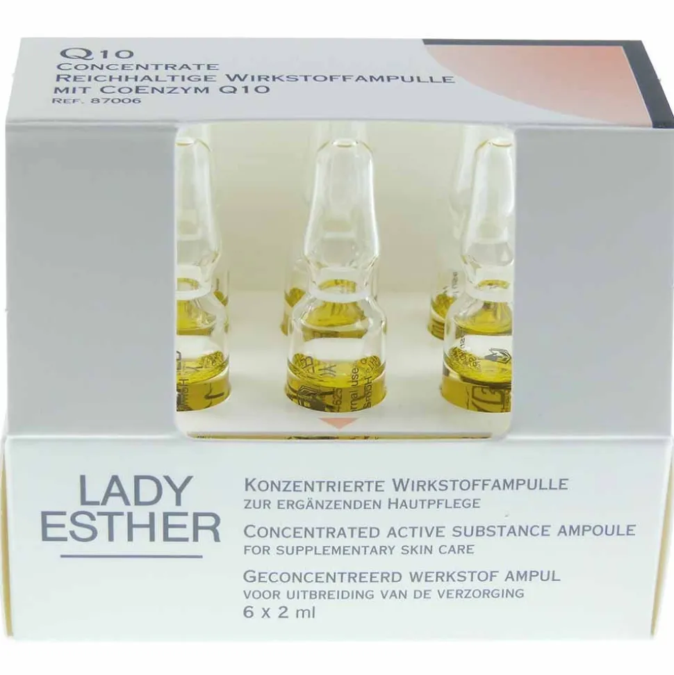 Die Lady Esther Ampullen Q10 Concentrate sind sehr reichhaltig, ziehen schnell ein und die Haut fühlt sich angenehm frisch an. Q10 unterstützt die Fähigkeit der Haut, sich selbst zu regenerieren und reduziert die Faltentiefe.