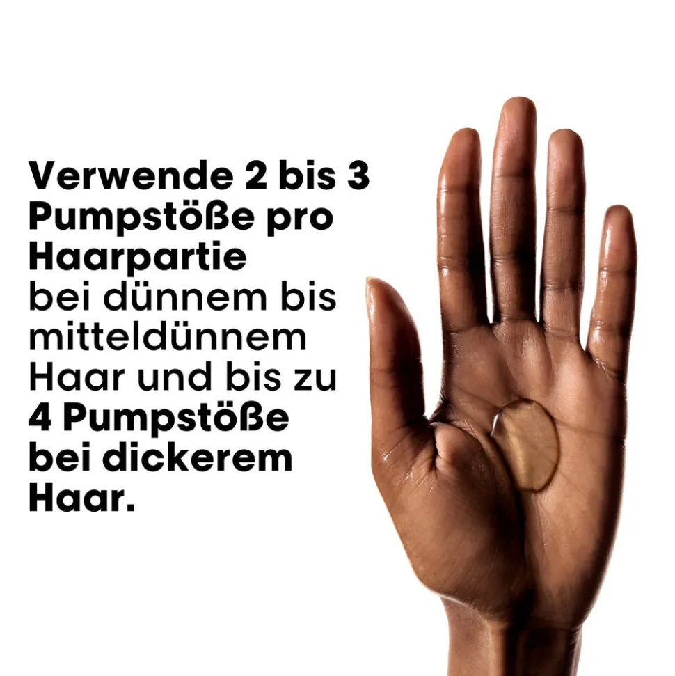 2. Je nach Haarlänge 2 bis 4 Pumpstöße pro Abschnitt auftragen.