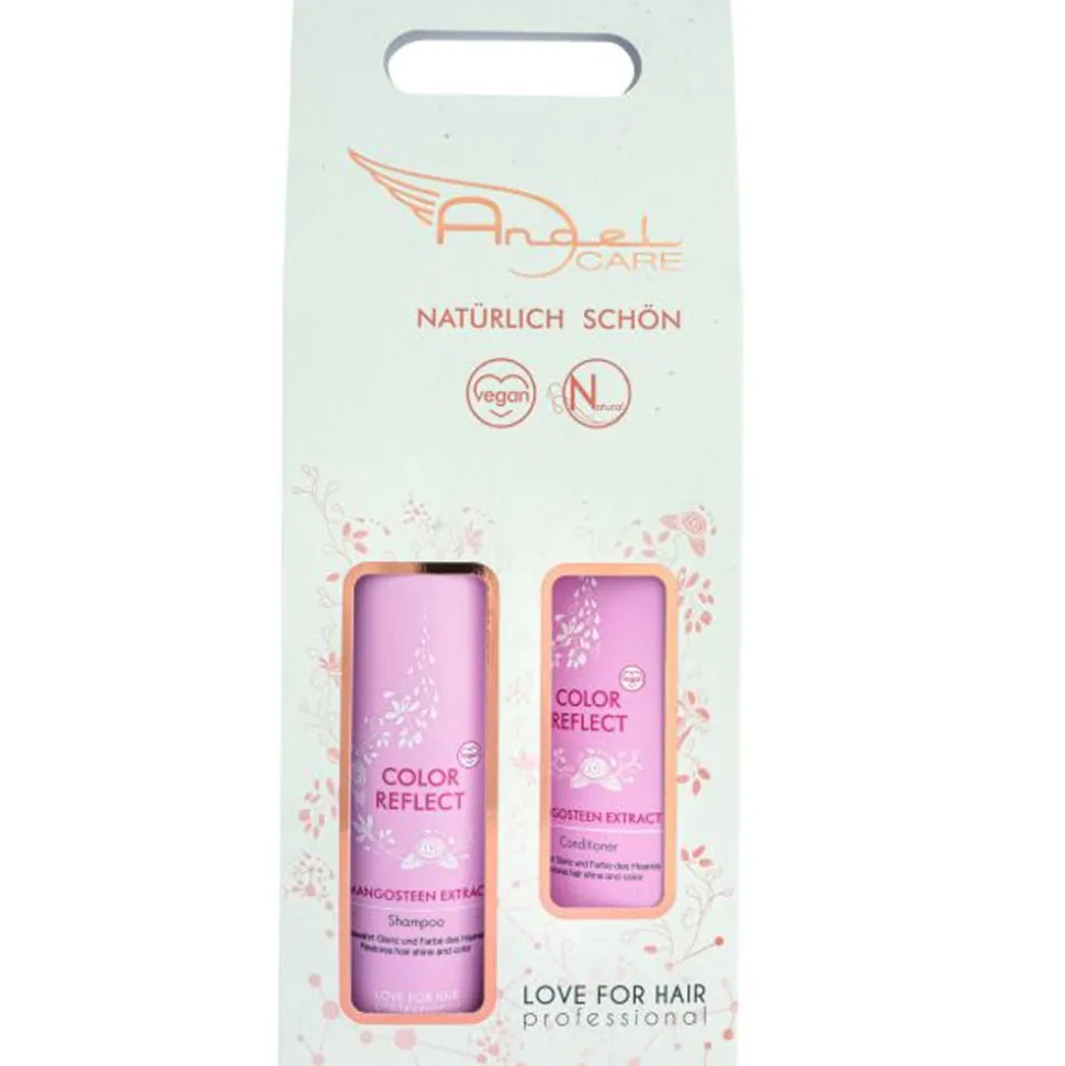 Das LOVE FOR HAIR Professional Angel Care Color Reflect Duo Pack ist die ideale Pflege-Kombi für coloriertes Haar. Das Duo enthält ein sanft reinigendes Shampoo und einen pflegenden Conditioner.