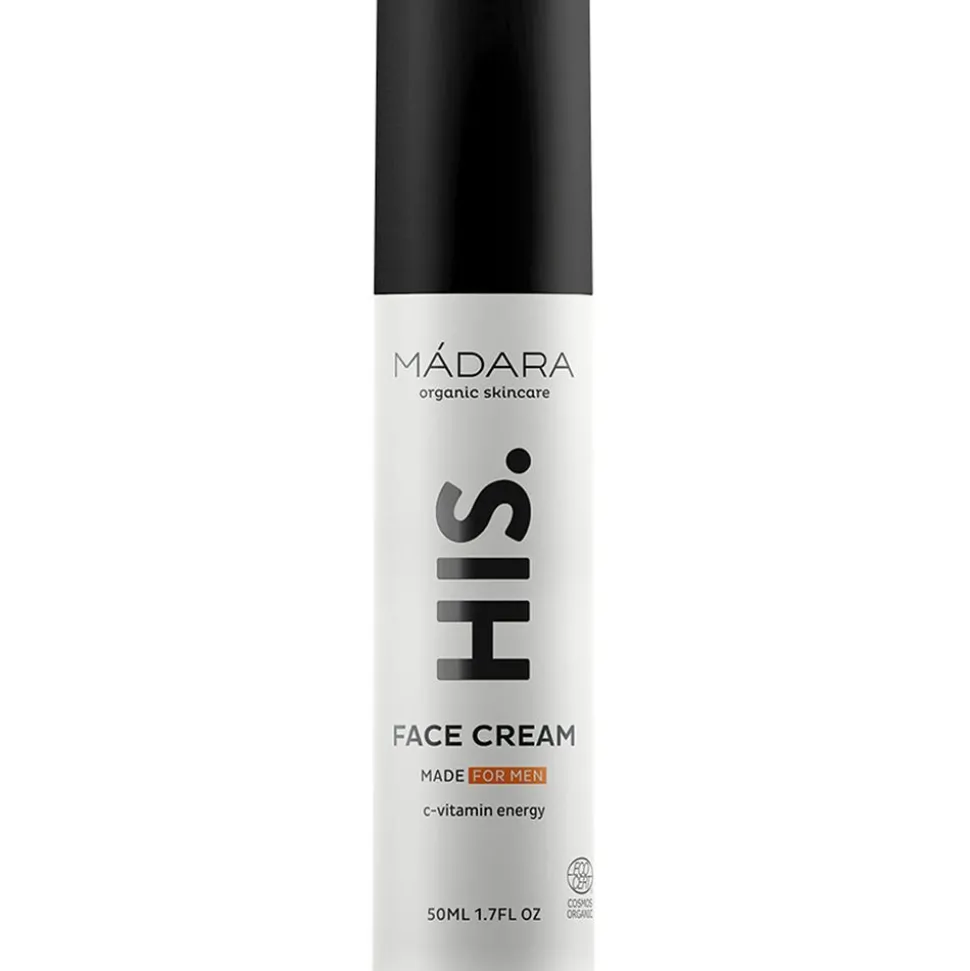 Die MÁDARA HIS Face Cream reduziert Trockenheit und verbessert das Hautbild. Für eine glatte, gesunde und gutaussehende Haut ist eine regelmäßige Pflege das A und O. Diese vielseitige, speziell für Männer entwickelte Feuchtigkeitscreme haben wir mit Vitamin C angereichert – für die tägliche Feuchtigkeitsversorgung ist sie dein bester Kumpel. Die als Biokosmetik zertifizierte Formulierung setzt auf hochwirksame nordische Inhaltsstoffe. Eichenrinde versorgt die Haut mit wichtigen Antioxidantien und verleiht ein frisches Aussehen, während der nordische Pfifferling das Erscheinungsbild von feinen Linien und Falten mildert.