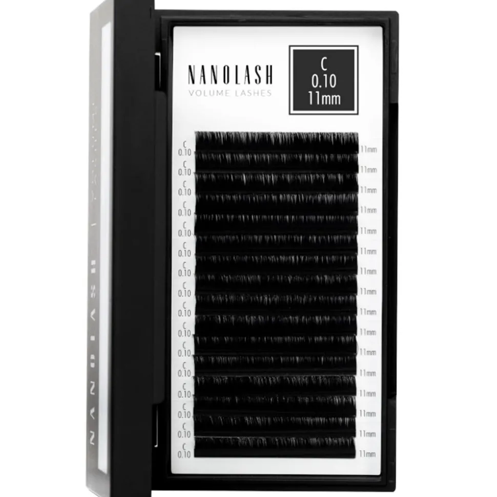 Die Nanolash Volume Lashes 0.10 C 10mm zur Wimpernverlängerung im Stil „Silk Lashes“ sind zur Anwendung in Kosmetikstudios bestimmt. Sie wurden aus einem hochwertigen, synthetischen Stoff hergestellt, wodurch sie Erwartungen der besonders anspruchsvollen Kundinnen und Wimpernstylistinnen erfüllen. Sie zeichnen sich durch eine überdurchschnittliche Qualität aus, weil sie dicht gewebt und handgemacht sind. Die künstlichen Wimpern sind nicht nur besonders weich und elastisch, sondern auch den menschlichen Naturwimpern täuschend ähnlich. Sie ermöglichen beeindruckende Effekte dank der haltbaren Biegung, tiefen Farbe und großen Auswahl der Wimpernvarianten. Die Wimpernextensions kommen in fünf Dicken und acht Längen vor. Zur Auswahl stehen außerdem zwei Biegungstypen. Diesbezülich ist es möglich, die Kunstwimpern an die individuellen Bedürfnisse problemlos anzupassen. Die Wimpernextensions Nanolash Volume Lashes bewähren sich sowohl bei Volumentechniken als auch bei der klassischen Wimpernverlängerung. Die Struktur der Härchen ermöglicht die Bildung der Wimpernbüschel mit der Shifting- oder Scratch-Methode.