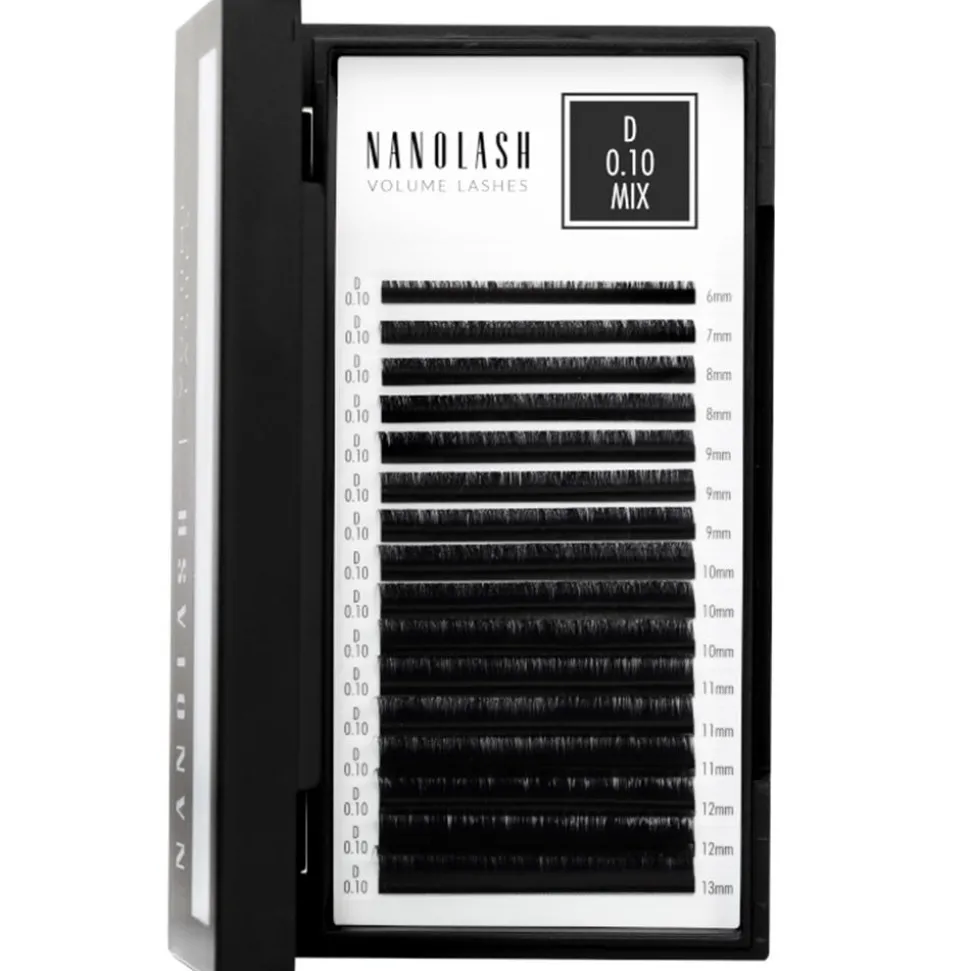 Die Nanolash Volume Lashes 0.10 D 6-13mm zur Wimpernverlängerung im Stil „Silk Lashes“ sind zur Anwendung in Kosmetikstudios bestimmt. Sie wurden aus einem hochwertigen, synthetischen Stoff hergestellt, wodurch sie Erwartungen der besonders anspruchsvollen Kundinnen und Wimpernstylistinnen erfüllen. Sie zeichnen sich durch eine überdurchschnittliche Qualität aus, weil sie dicht gewebt und handgemacht sind. Die künstlichen Wimpern sind nicht nur besonders weich und elastisch, sondern auch den menschlichen Naturwimpern täuschend ähnlich. Sie ermöglichen beeindruckende Effekte dank der haltbaren Biegung, tiefen Farbe und großen Auswahl der Wimpernvarianten. Die Wimpernextensions kommen in fünf Dicken und acht Längen vor. Zur Auswahl stehen außerdem zwei Biegungstypen. Diesbezülich ist es möglich, die Kunstwimpern an die individuellen Bedürfnisse problemlos anzupassen. Die Wimpernextensions Nanolash Volume Lashes bewähren sich sowohl bei Volumentechniken als auch bei der klassischen Wimpernverlängerung. Die Struktur der Härchen ermöglicht die Bildung der Wimpernbüschel mit der Shifting- oder Scratch-Methode.