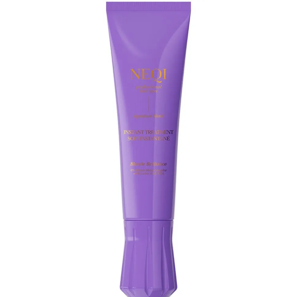 Die 3-Minuten NEQI Treatment Treasure Blonde Brilliance Haarkur bietet eine professionelle Haarpflege für Zuhause. Das farbpigmentierte Glossing mit Milchsäure (AHA) dringt tief in das Haar ein, baut es auf und sorgt für einen intensiven, kühlen Blondton. Der Blonde-Shine-Komplex neutralisiert unerwünschte Gelbtöne und verleiht deinem Haar in nur 3 Minuten einen frischen, strahlenden Glanz.