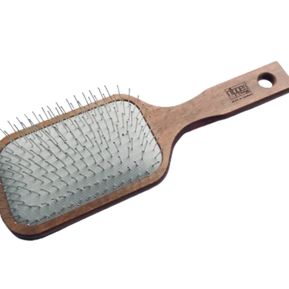 Diese schmale länglichen Nippes Pneumatic Haarbürste 11 Reihen pflegen Ihr Haar schnell und professionell, wie beim Friseur. Die Luftpolsterung ist dabei schonend zur Kopfhaut. Ob nach dem Haarewaschen oder zum Stylen – die Metallstifte gleiten einfach durchs Haar. Die Stahlstifte,ein weiches Gummikissen und die Kugelköpfe erlauben ein angenehmes Styling und sorgen für eine angenehme Massage der Kopfhaut. Vom Griff in brauner Buche über das Gummikissen bis hin zu den Doppelkopf-Metallstiften verwenden wir nur ausgesuchte Materialien für unsere Produkte. Die Bürste ist in der Größe 238 x 85mm erhältlich.