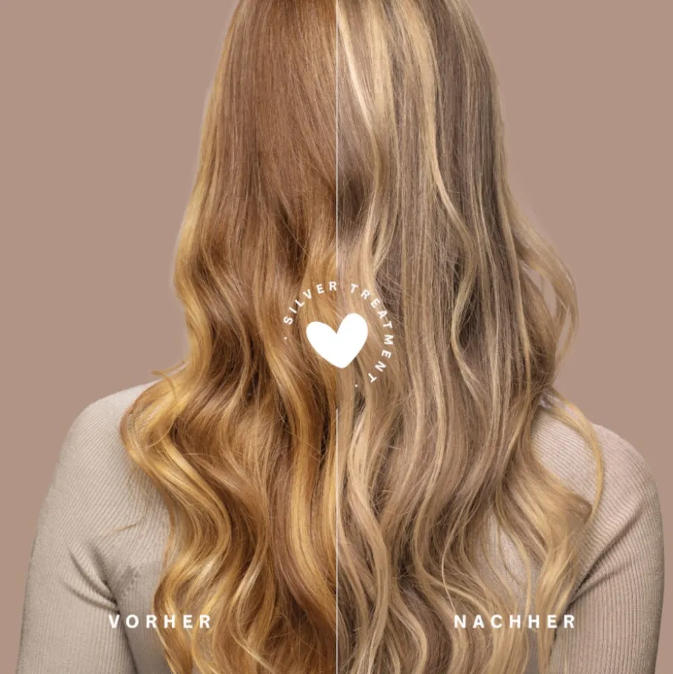 Spüle das NOELIE Silver Treatment mit lauwarmem Wasser aus. Verwende bitte kein Shampoo, damit sich die Farbpigmente optimal entfalten können. Als perfekten Abschluss empfehlen wir unseren zertifizierten, silikonfreien Volume & Shine Hydrating Conditioner.