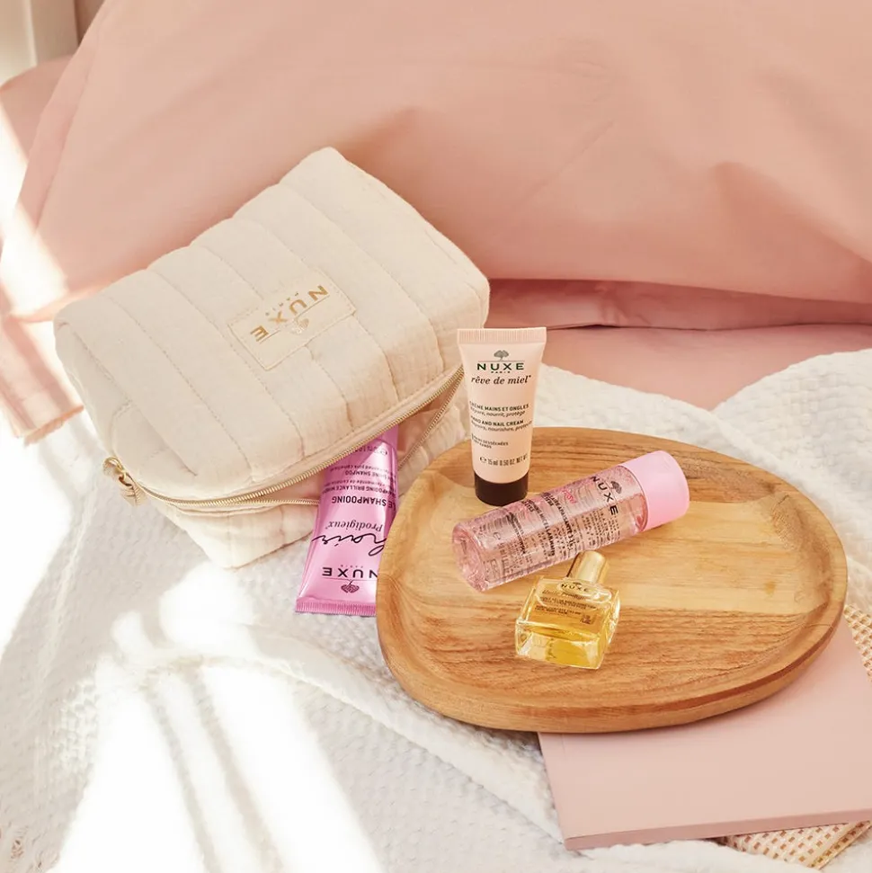 Die NUXE Essentials Reisegrößen ist perfekt für eine schöne Pflege während Deiner Reise. Das Set enthält 1x NUXE Hair Prodigieux Glanz-Shampoo 50 ml, 1x NUXE Huile Prodigieuse 30 ml, 1x NUXE Very Rose Mizellen Reinigungswasser 50 ml und 1x NUXE Rêve de Miel Hand- & Nagelcreme 15 ml.