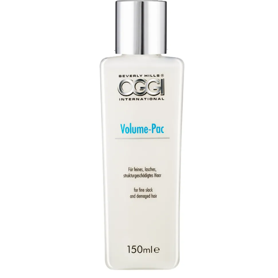 Die Oggi Volume Pac ist eine Haarkur mit Aloe Vera. Sie pflegt feines, lasches Haar und macht es nicht zu weich.