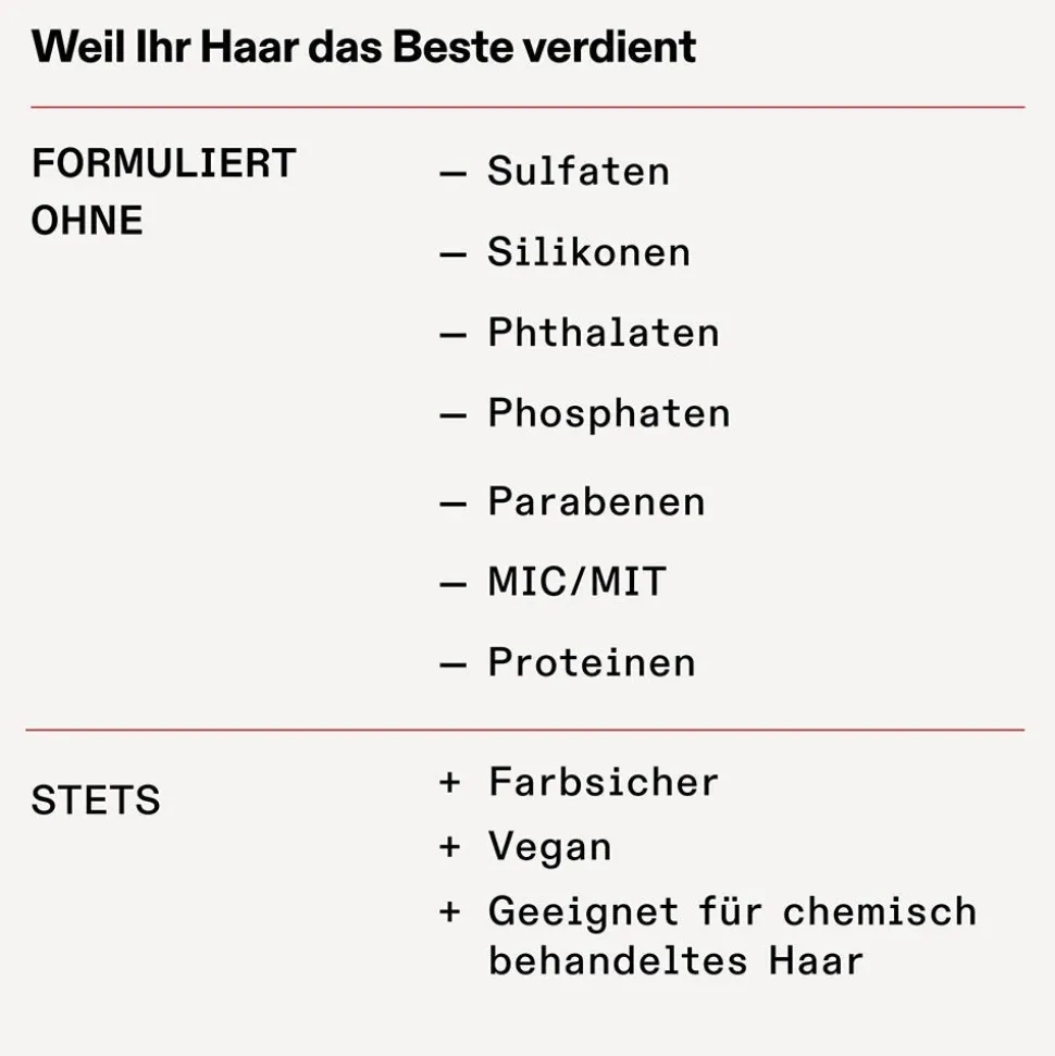 | Besonderheit | Parabenfrei, Silikonfrei, Sulfatfrei, Vegan |