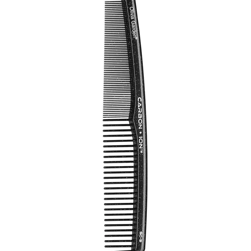Der Olivia Garden Carbon + Ion SC-2 ist ein Haarschneidekamm aus Carbon: sehr widerstandsfähig, geringes Gewicht, nahezu unzerbrechlich und hitzebeständig bis 220°.