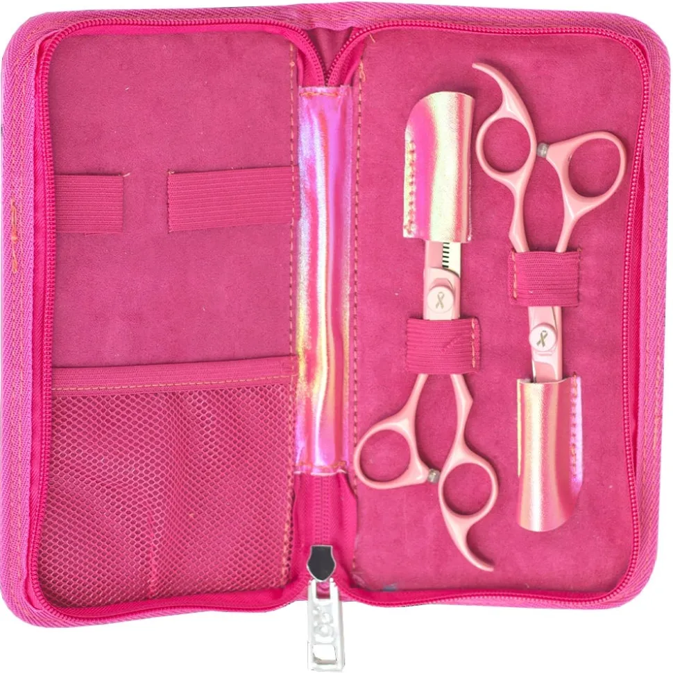 2er Set Haarschneidescheren in der Think Pink Edition mit Etui