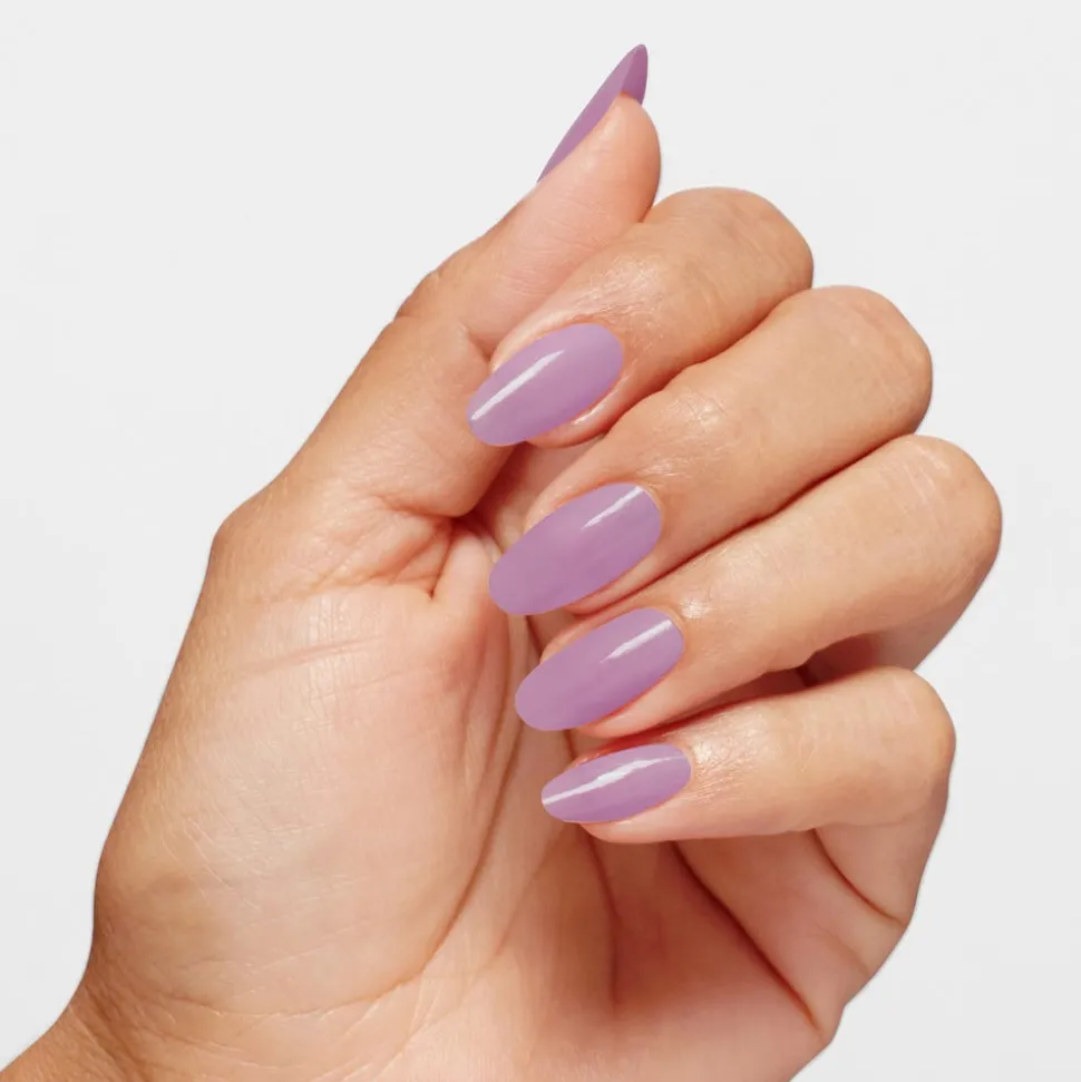 Anwendung des OPI Infinite Shine Nagellack Last Glam Standing in Flieder
