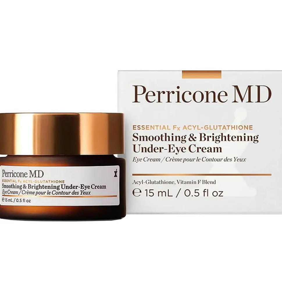 Perricone MD Essential Fx Acyl-Glutathione Smoothing & Brightening Under-Eye Cream ist eine unserer besten Augencremes gegen Falten. Die Creme stärkt und pflegt die Haut und mildert sofort das Erscheinungsbild von Augenringen, Linien und Falten. Diese wirksame Anti-Falten-Formel wurde mit Acyl-Glutathion angereichert, um die empfindliche Haut in der Augenpartie zu glätten, zu schützen und regenerieren. Die intensiv feuchtigkeitsspendende und mit Vitamin F angereicherte Creme stellt die Geschmeidigkeit der Haut wieder her und verleiht ihr einen gesunden Glanz, indem sie die Feuchtigkeitsbarriere der Haut wieder aufbaut.