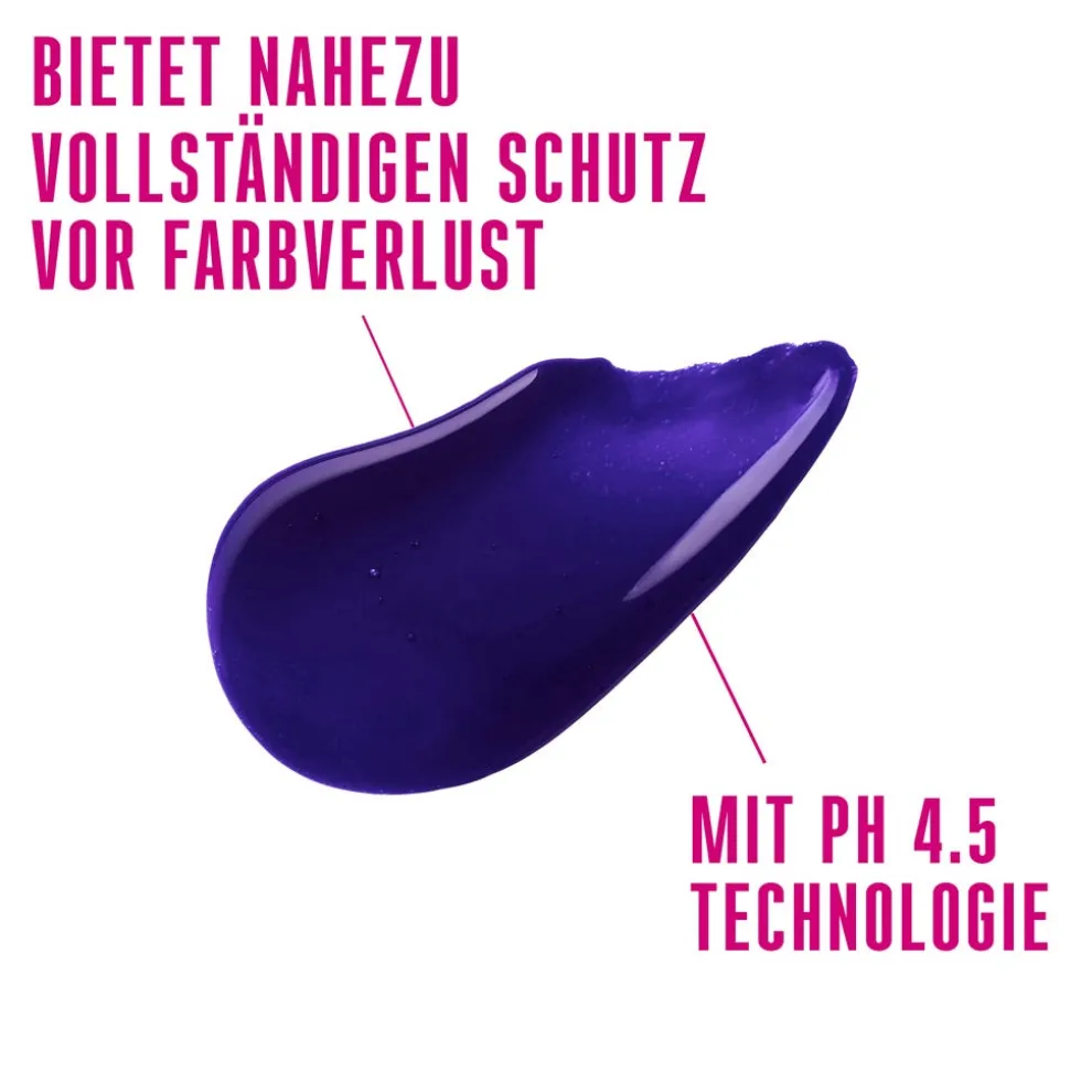 - Bringt das Haar wieder auf seinen optimalen pH-Wert von 4.5 und erzielt bis zu 90% Farbbeständigkeit für bis zu 30 Wäschen