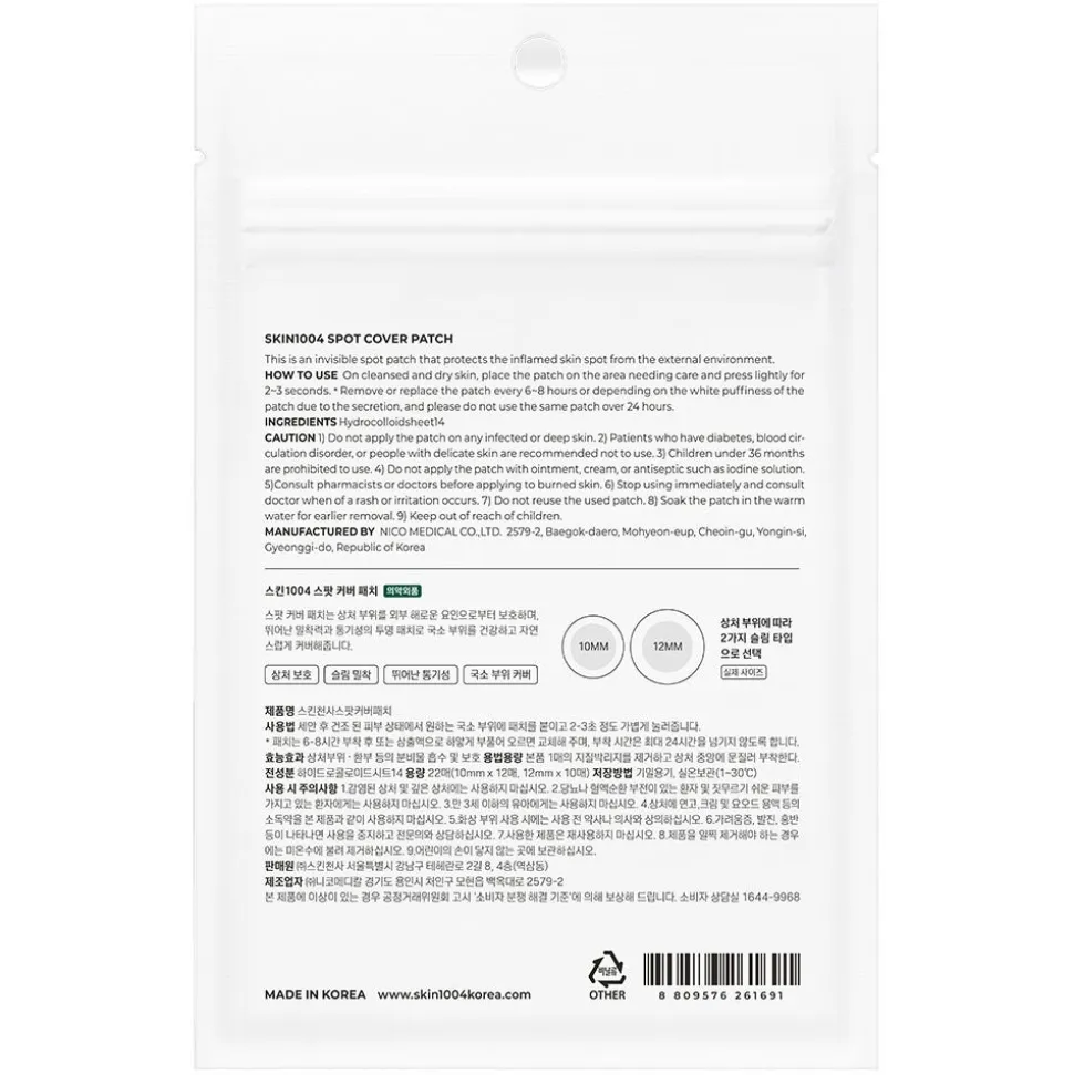 Das SKIN1004 Madagascar Tea-Trica Spot Cover Patch behandelt gezielt Problemzonen von Ausbrüchen bis zur Abheilung. Die Hydrokolloidschicht haftet an den Pickeln, absorbiert die enthaltene Flüssigkeit und trocknet sie aus. Gleichzeitig verhindert sie das Eindringen von Bakterien und schafft so ein ideales Umfeld für die natürliche Heilung. Das Pflaster hilft bei oberflächlicher Akne wie Pickeln und Mitessern. Dank der dünnen, abgeschrägten Außenkanten ist es kaum sichtbar und hält perfekt.