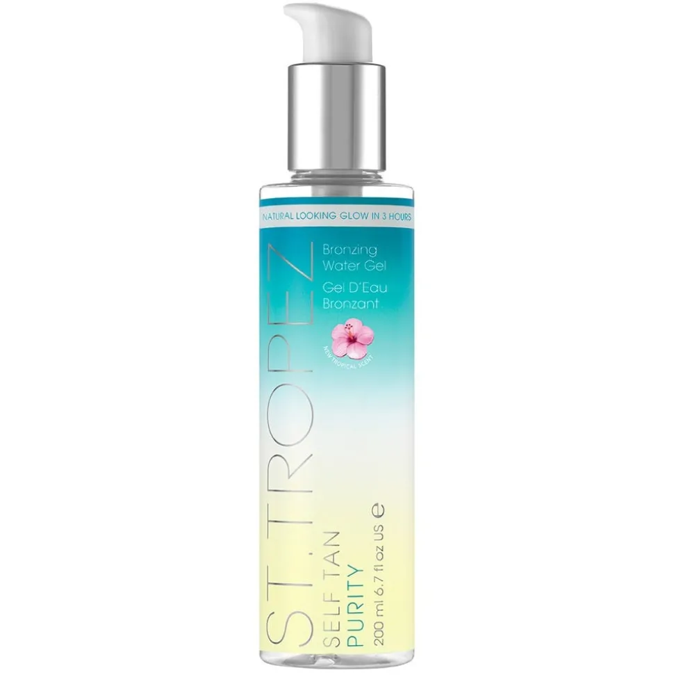 Aus Gel wird Wasser – dieses klare und leichte ST.TROPEZ Self Tan Purity Bronzing Water Gel ist die neueste Ergänzung der Purity-Linie und entwickelt in nur 3 Stunden eine natürlich aussehende, goldene Bräune. Das erfrischende, nicht klebende und schnell einziehende Gel muss nicht abgespült werden. Die Haut wird bis zu 72 Stunden mit Feuchtigkeit versorgt, für eine länger anhaltende und gleichmässigere Bräune. Für beste Resultate mit dem Luxe Tan Applicator Mitt auftragen.