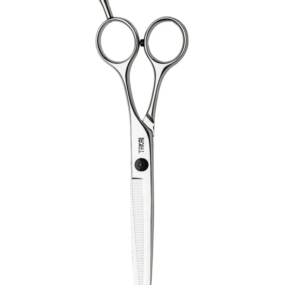 Die Takai VUH 420 ist ein Modell mit besonders günstigem Preis-/Leistungsverhältnis. Die Takai VUH 420 ist für alle Effiliertechniken bei jedem Haar geeignet. Durch ihre klassische gerade Form mit versetzbarem Fingerhaken lässt sich die Schere beidseitig nutzen.