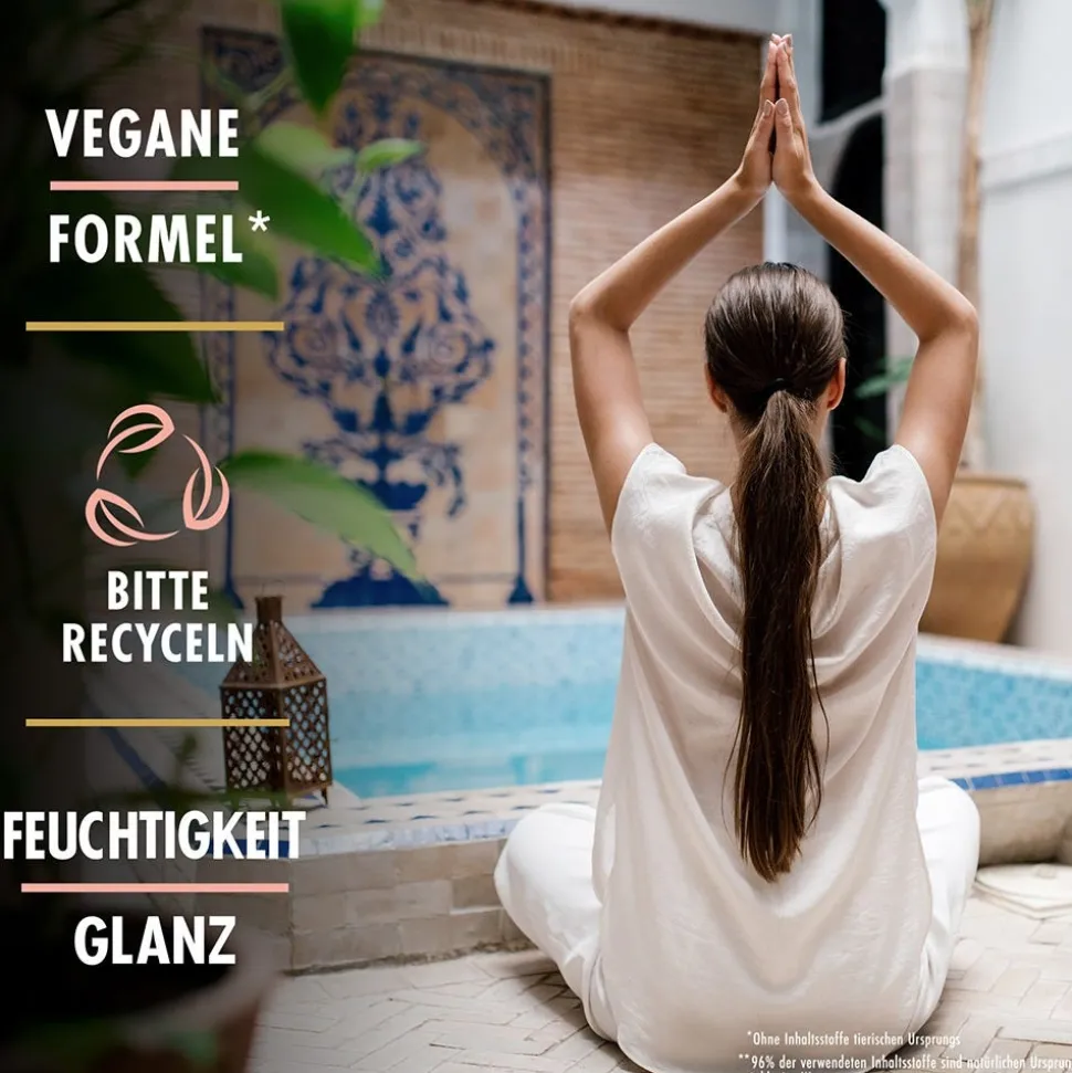 Inspiriert von der indischen Wellness-Tradition des Ayurveda, pflegen das Shampoo, der Conditioner und das Haaröl mit Amla-Fruchtextrakt, Sesam-Öl, Aloe vera und Calendula dein Haar und sorgen für harmonische und wohltuende Momente bei jeder Anwendung. Diese wertvollen Inhaltsstoffe spenden intensive Feuchtigkeit und verleihen deinem Haar strahlenden Glanz.