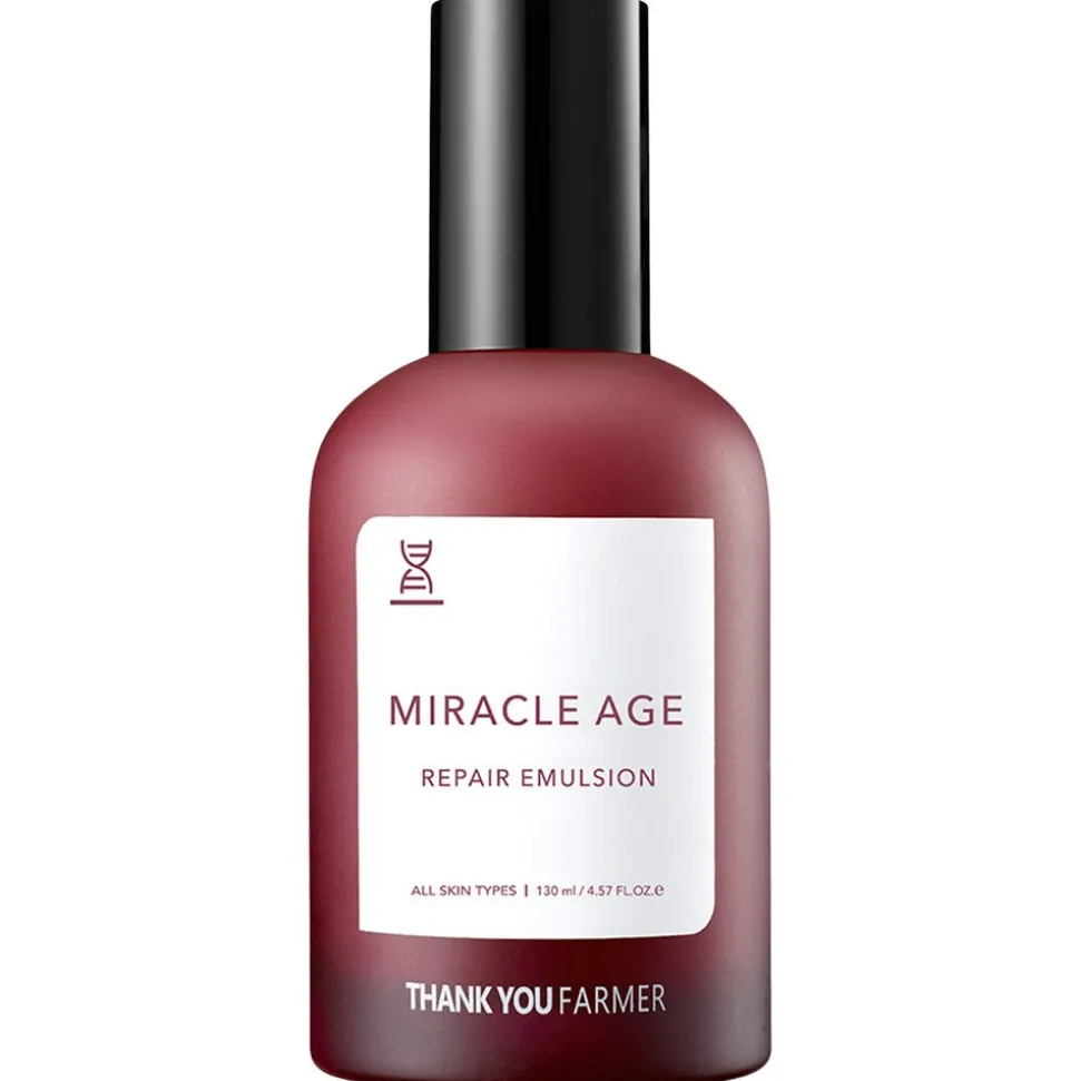 Die Thank You Farmer Miracle Age Repair Emulsion ist eine Anti-Aging-Emulsion, die trockener, fett- und feuchtigkeitsarmer Haut viel Feuchtigkeit und Nährstoffe spendet. Idealer Hauttyp: Trocken