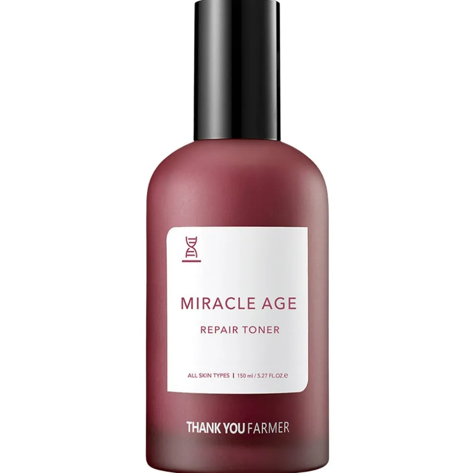 Der Thank You Farmer Miracle Age Repair Toner versorgt die Haut mit Feuchtigkeit und nährt sie, um die Bildung von Kollagen und Elastin zu fördern. Idealer Hauttyp: Trocken