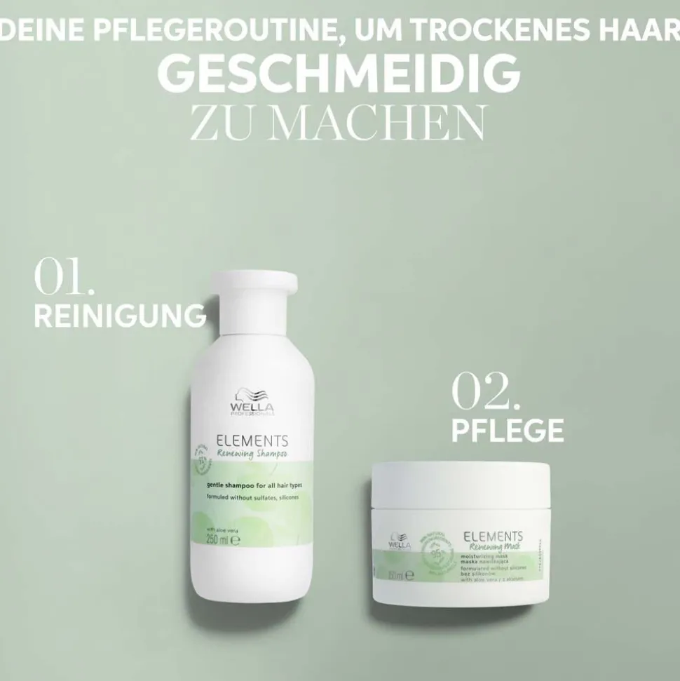 Elements ist die sanfteste Haarpflegelinie von Wella Professionals für ein Gefühl von gesundem Haar und Kopfhaut. Fühlen Sie den sanften Unterschied mit unseren pflegenden und hochleistungsfähigen Rezepturen mit bis zu 99 % Inhaltsstoffen natürlichen Ursprungs, frei von Inhaltsstoffen tierischen Ursprungs und formuliert ohne Silikone und Sulfate.
