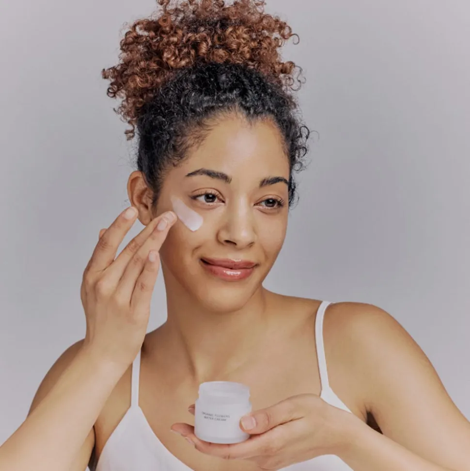 Die Whamisa Organic Flowers Water Cream verzichtet – anders als ihr Name vermuten lässt – komplett auf Wasser. Stattdessen kommt der Feuchtigkeitsspender Bio-Aloe-Vera zum Einsatz. Fermentierter Reis bindet Feuchtigkeit und schützt vor Austrocknung. Sojabohnen und Olivenöl unterstützen die Regeneration der Haut und verleihen ihr neue Vitalität.